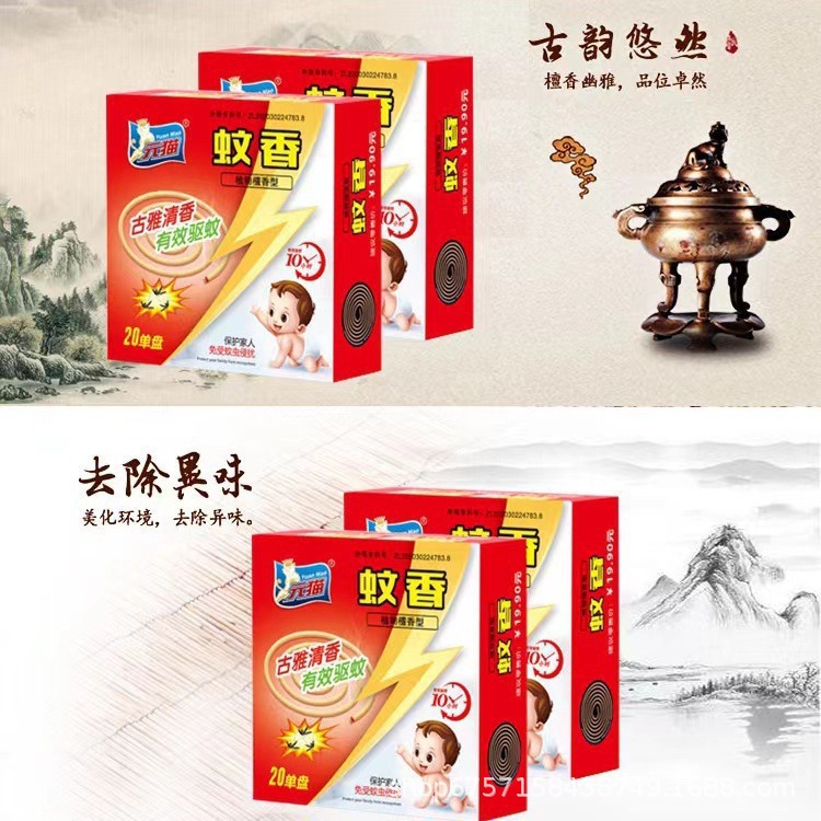 元猫蚊香植物檀香蚊香古雅清香强效灭蚊蚊香驱蚊神器家用香薰盘香