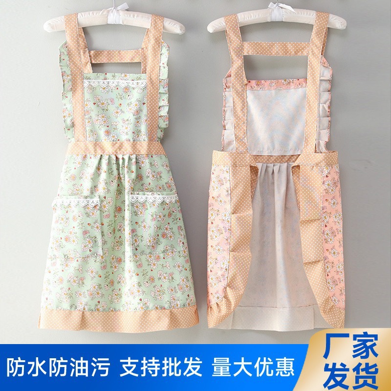 韩版围裙碎花耐磨防水耐可擦手家用厨房做饭男女围腰家居韩式碎花