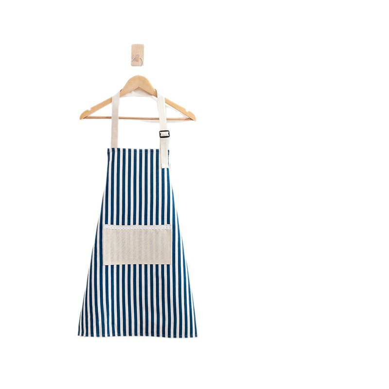厂家直销新款定制广告logo围裙棉麻条纹挂脖围裙厨房防污家居围裙