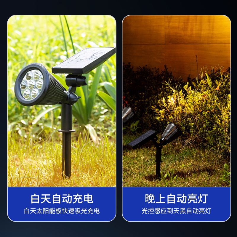 | 功能 | 太阳能射灯户外超亮防雨地插草坪灯家用室外景观庭院灯花园照树灯 |