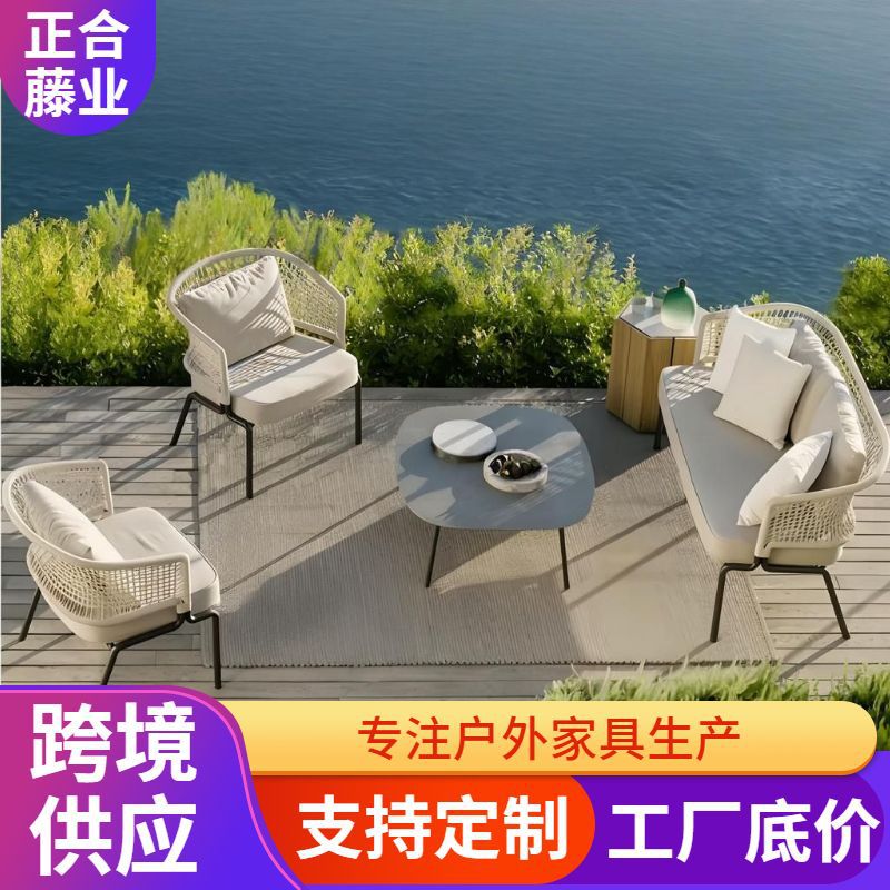北欧户外休闲餐桌椅组合酒店民宿露台室外简约编藤绳编桌椅可批发