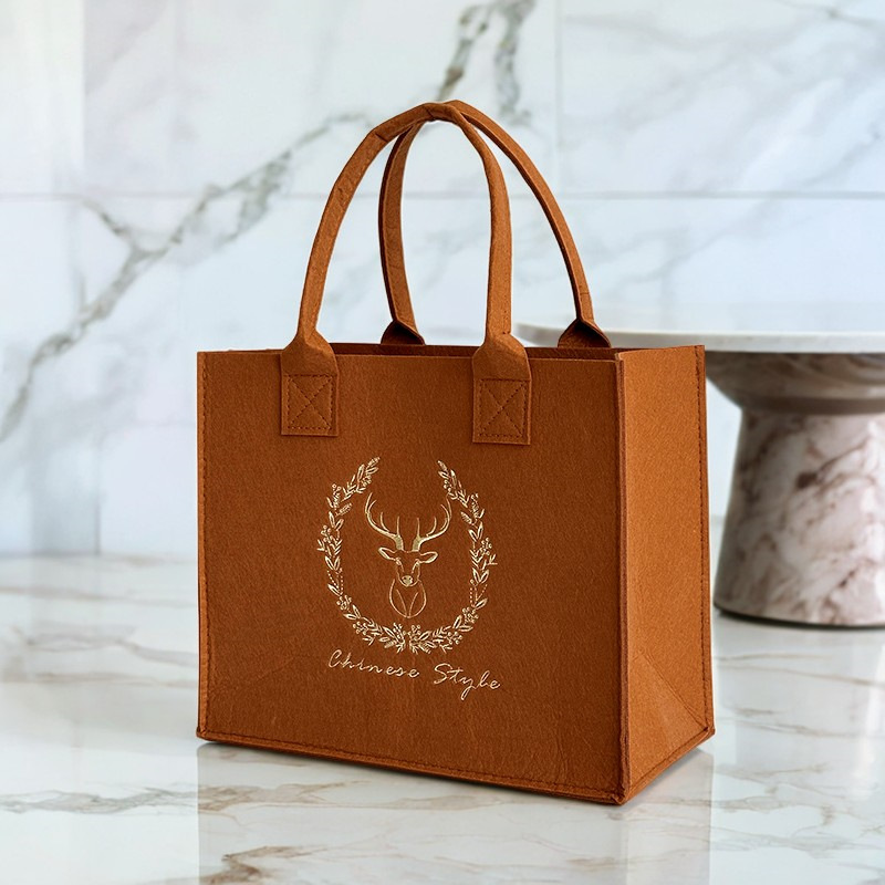 刺绣毛毡包手提袋斜挎大容量托特包加厚通勤毛毡手提礼品袋手工