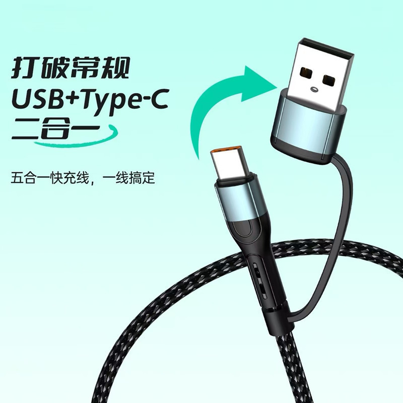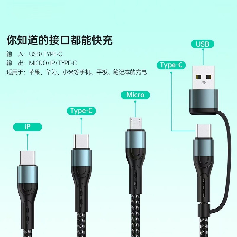 100W快充数据线二拖三适用苹果华为小米安卓type-c充电手机线闪充