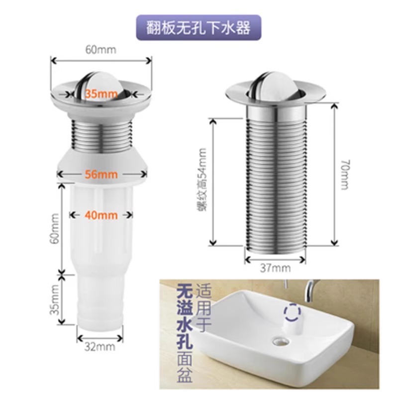厂家批发塑料加不锈钢翻板下水器 洗手盆/脸盆排水口下水厂家批发
