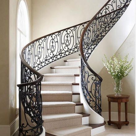 铁艺楼梯护栏阳台护栏手工锻打别墅室内欧式旋转扶手楼梯厂家