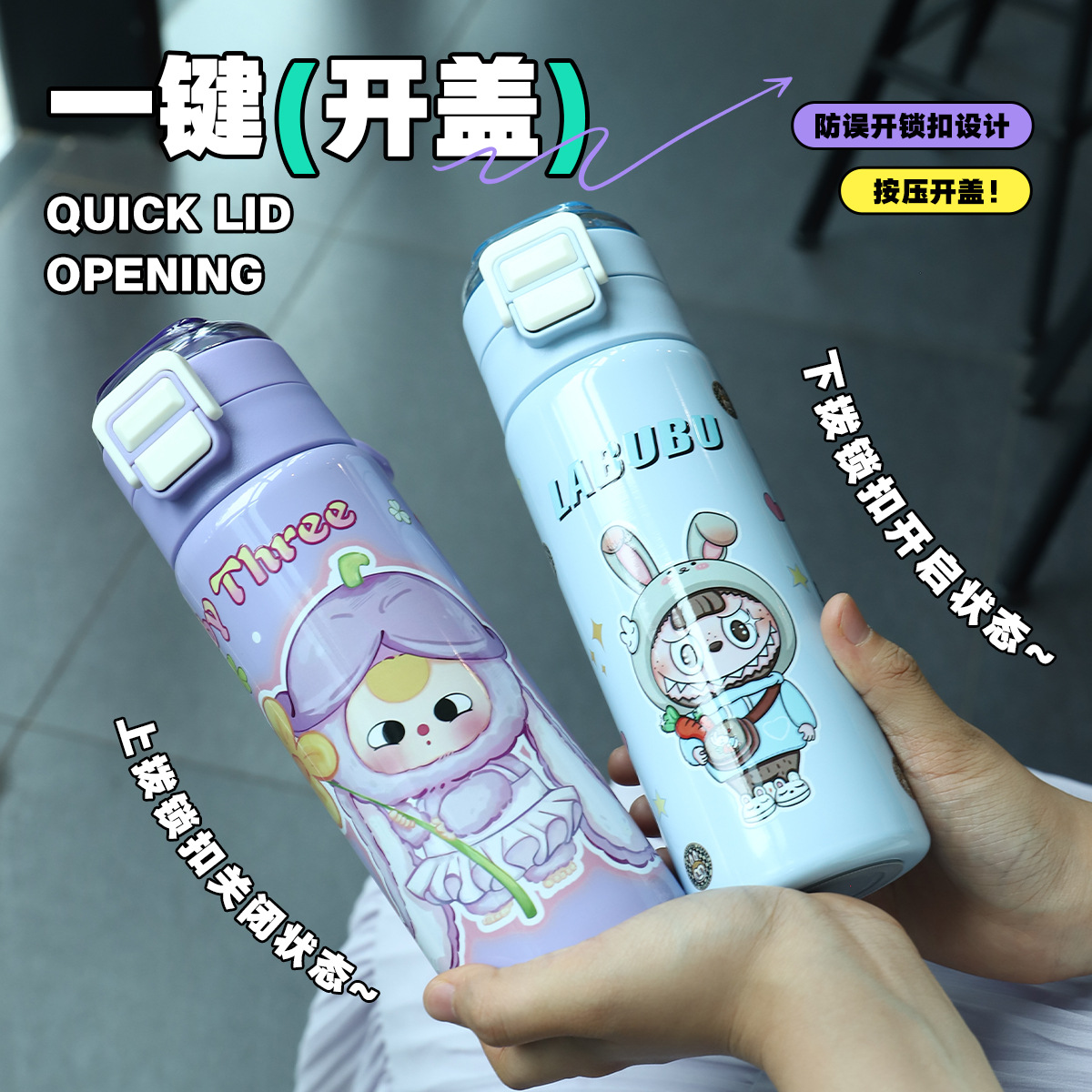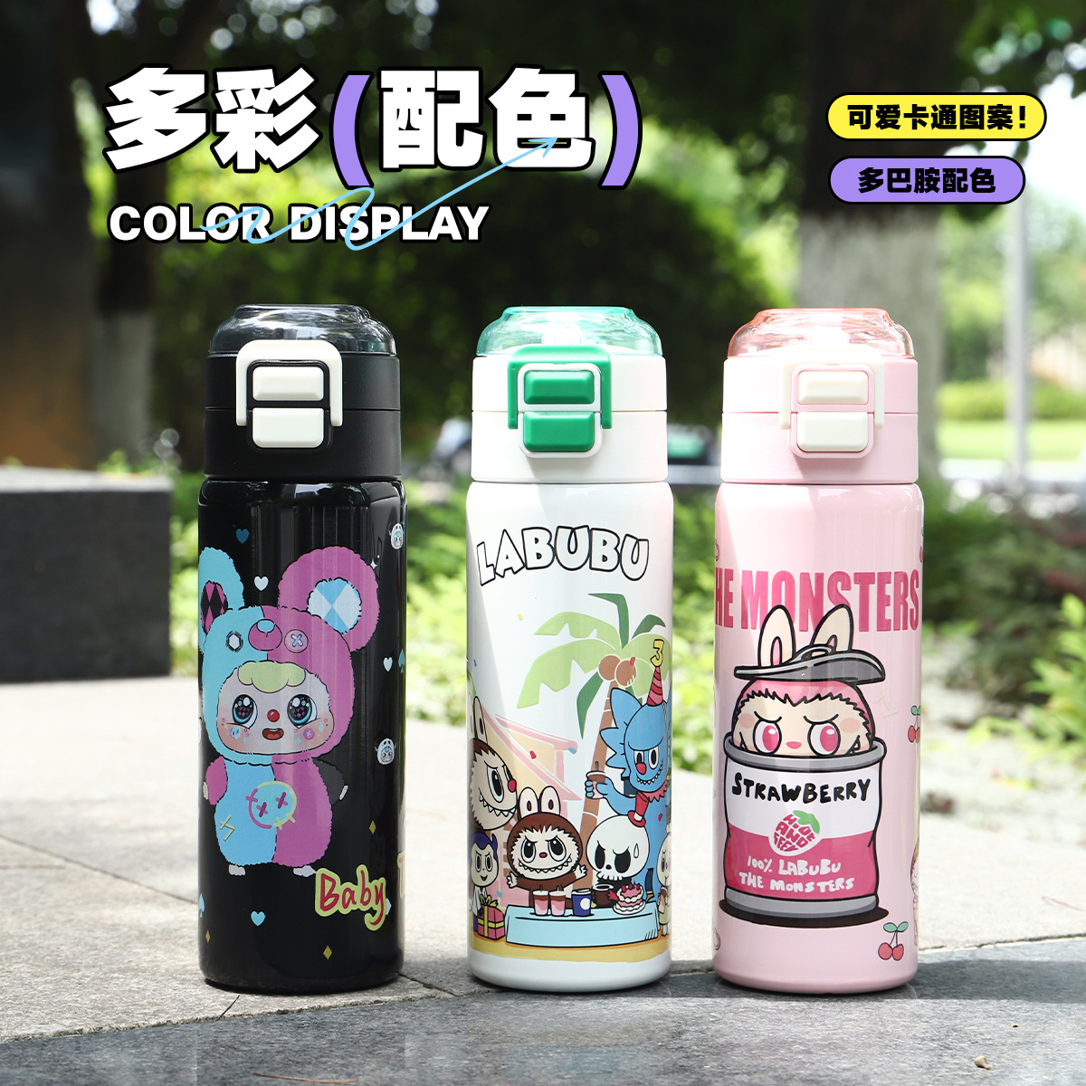 新款labubu卡通保温杯拉布布弹扣杯316不锈钢真空豌豆杯便捷家用