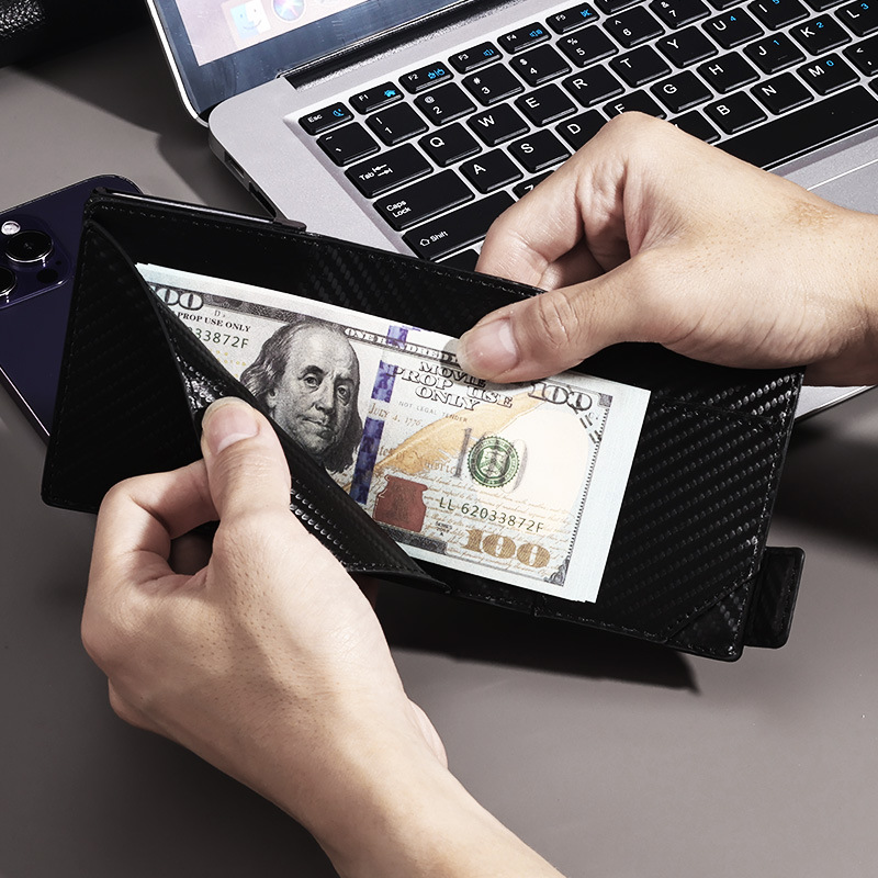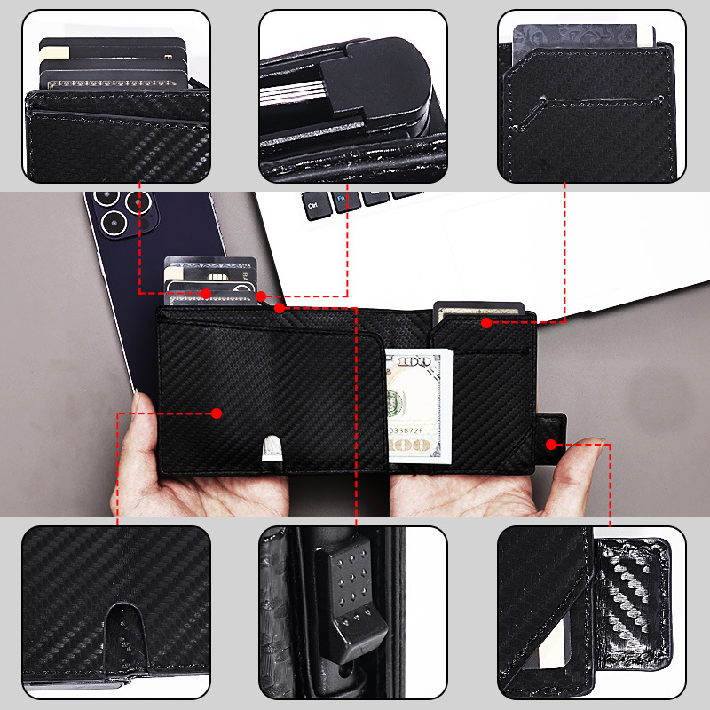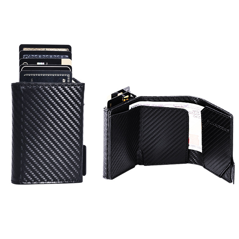 跨境热款防盗刷卡包防磁PU轻薄自动弹出金属卡包多卡位男士钱包