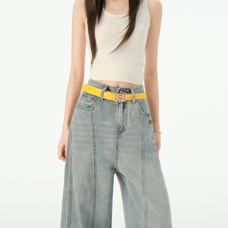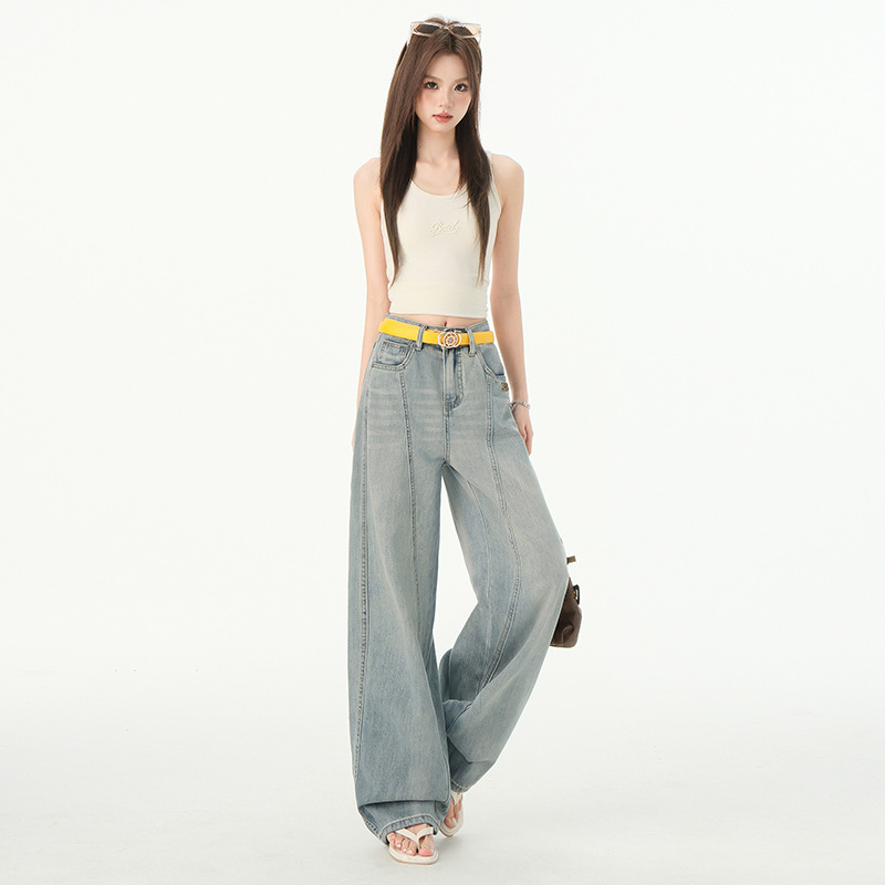 2025年高腰阔腿弯刀牛仔裤女新款时尚高腰宽松百搭阔腿弯刀牛仔裤