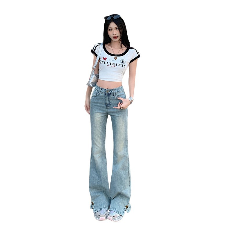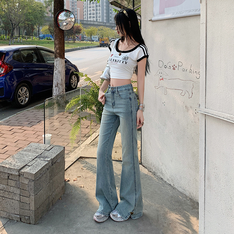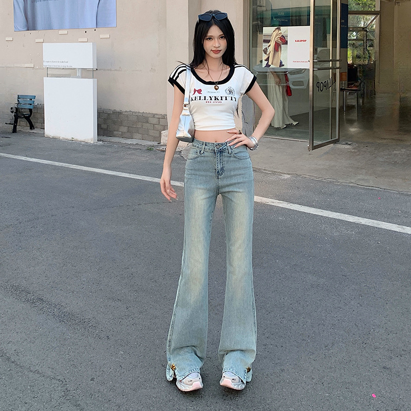 开叉微喇牛仔裤女2025年新款高腰显瘦夏季薄款大码胖mm马蹄喇叭裤