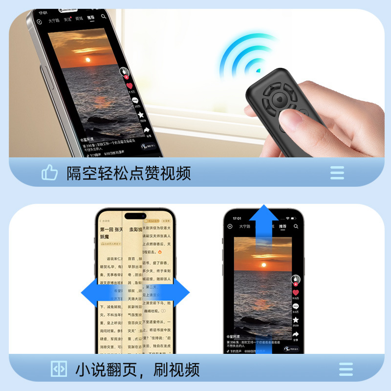 新款调焦蓝牙遥控器充电款多功能拍照电子书翻页短视频远程自拍器