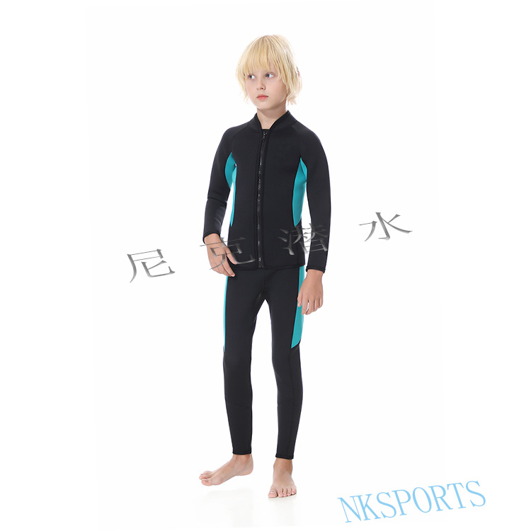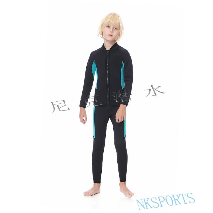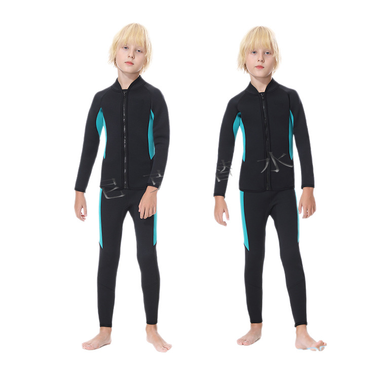 现货3MM潜水服儿童款分体冲浪衣防寒保暖男童女童浮潜长袖游泳衣