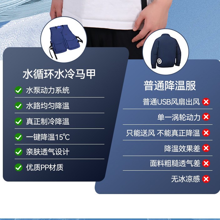新款空调服水循环制冷衣开襟拉链款无水管一体式降温马甲工装