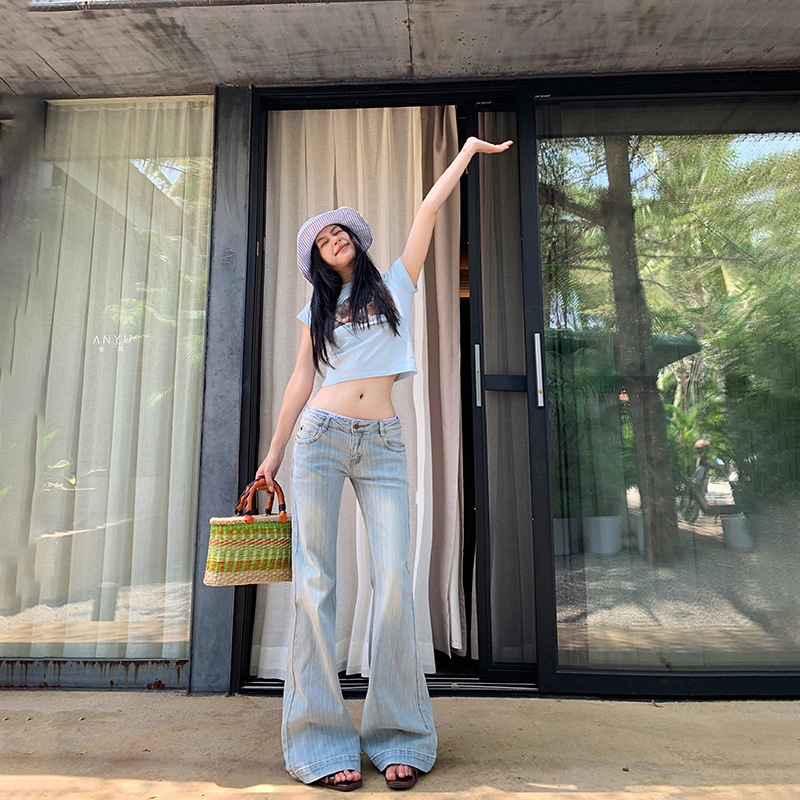 美式复古微喇牛仔裤女夏季直筒阔腿高腰显瘦梧桐马蹄喇叭拖地裤子