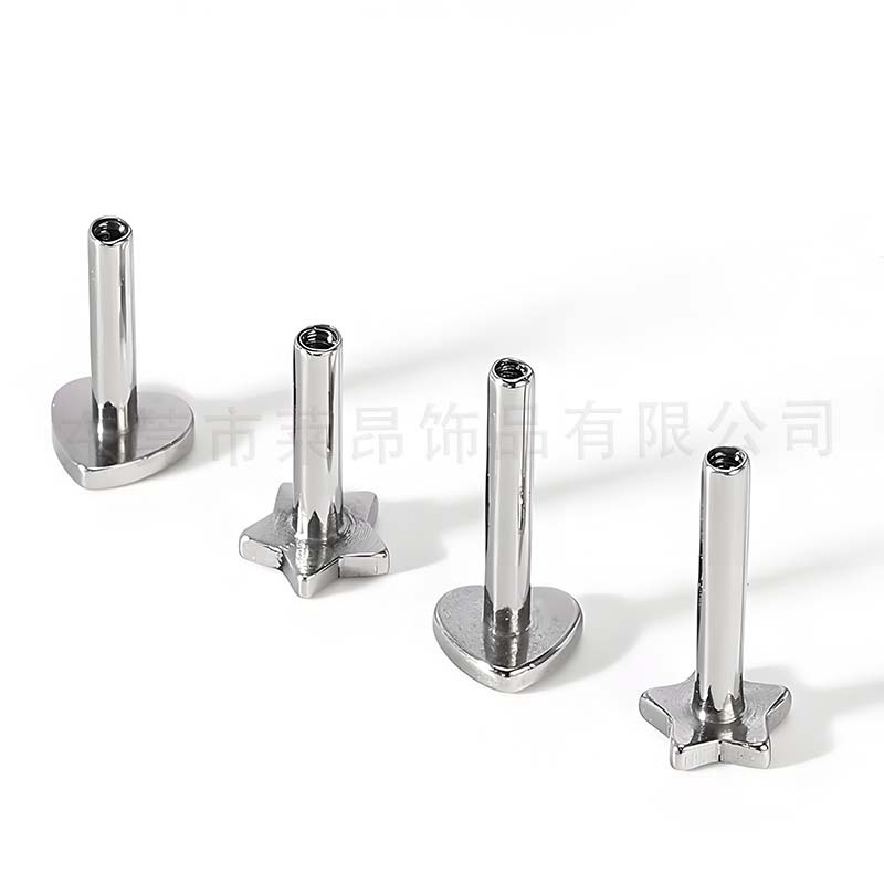 G23钛合金螺纹底座唇钉花星星爱心配件人体穿刺货源批发流苏