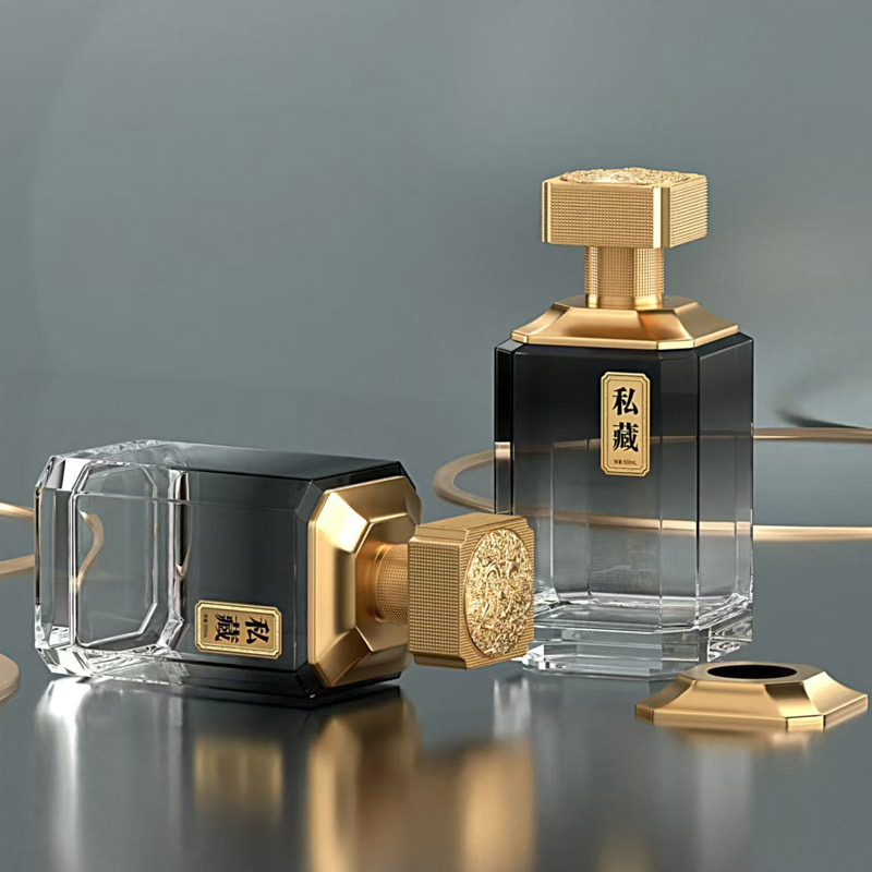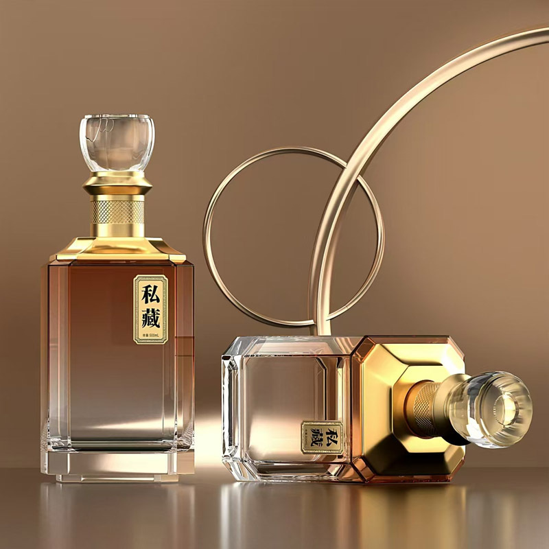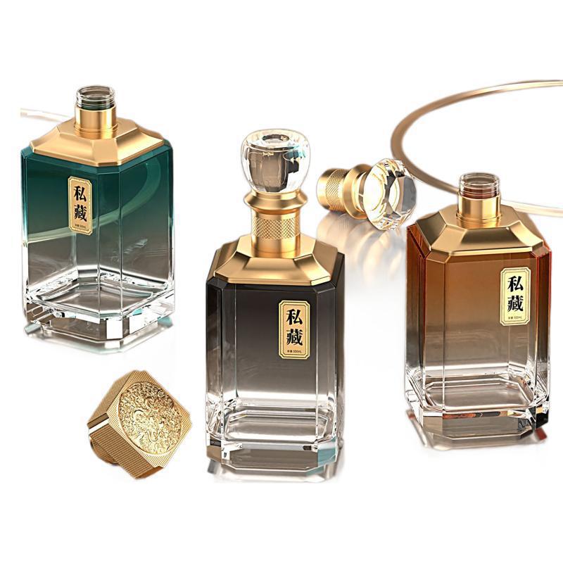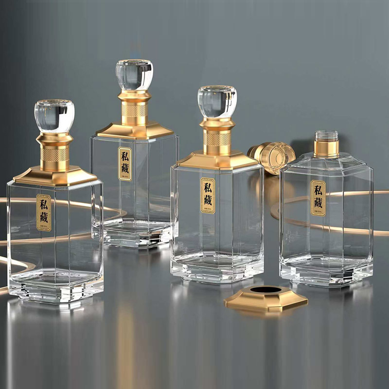 喜宴婚礼喜酒瓶方形玻璃私藏白酒瓶子空瓶500ml经典酒瓶结婚用
