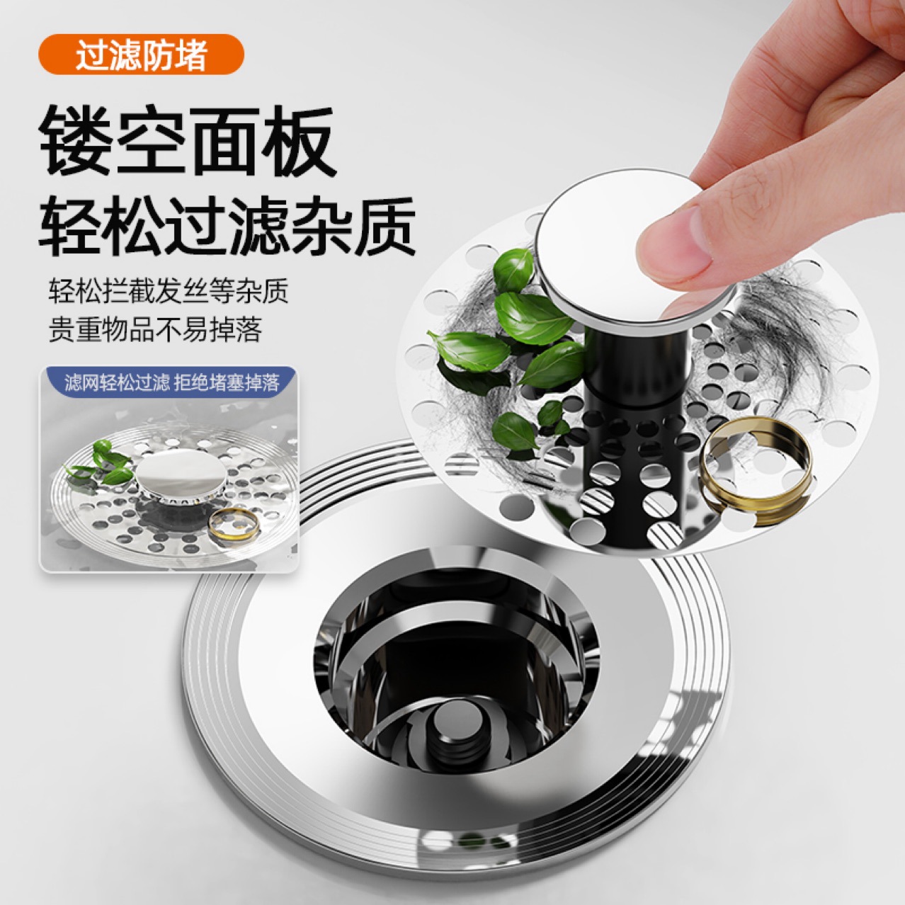 卫生间通用型洗手盆漏水塞洗脸池按压式防堵弹跳芯下水器防虫防臭