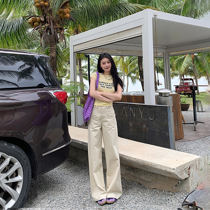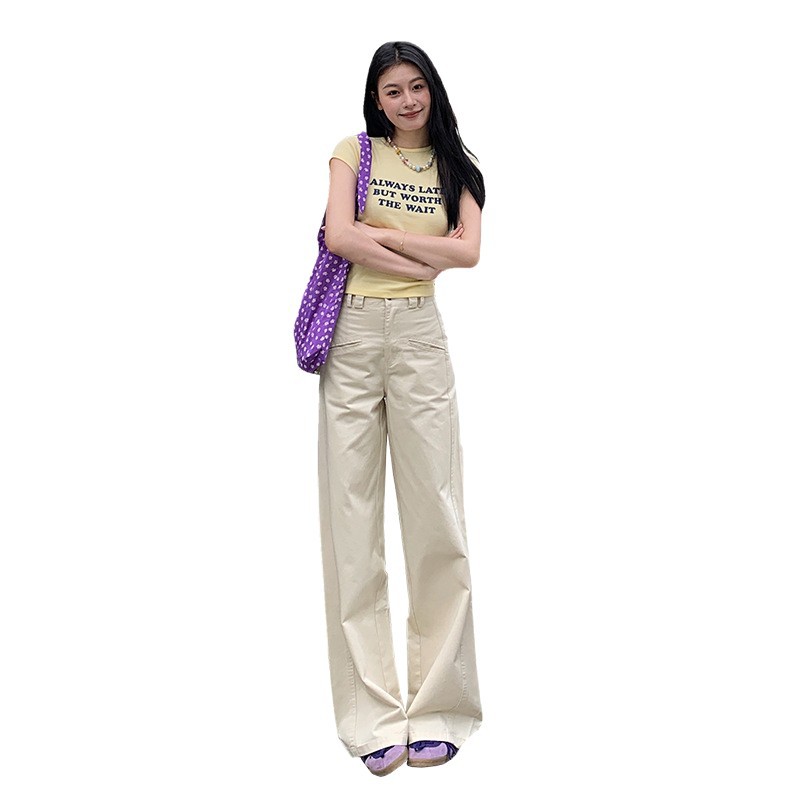 美式象牙白直筒牛仔裤女2025夏季新款高腰显瘦百搭宽松垂感拖地裤