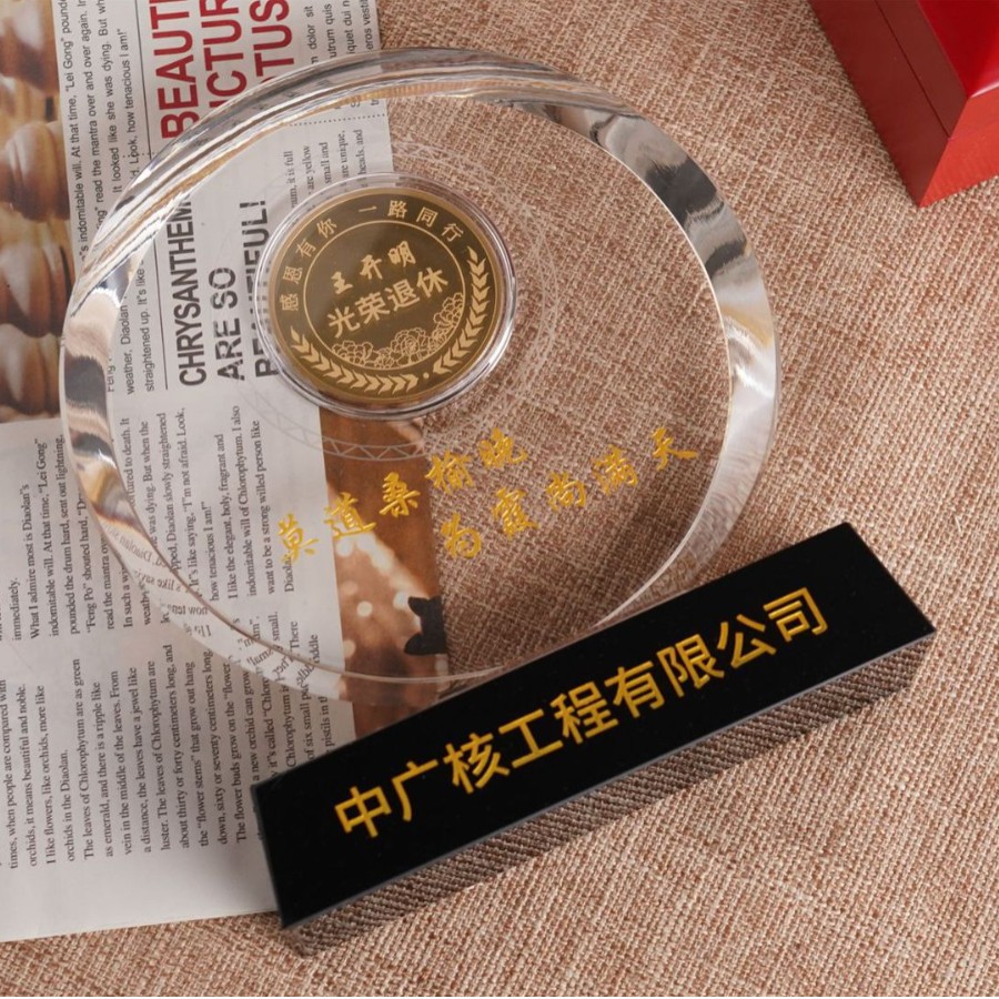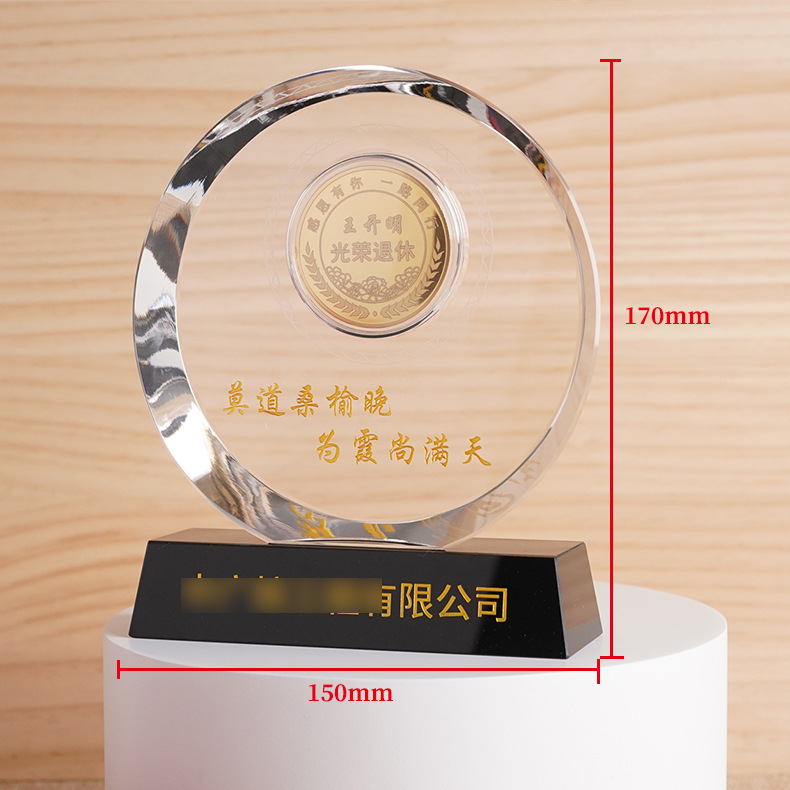 光荣退休纪念品订作水晶摆件送领导男女老师员工同事离职礼物银币
