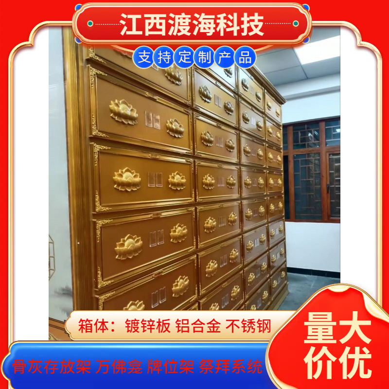 主营产品:骨灰存放架,骨灰盒寄存架,福寿架,万佛龛,牌位架,殡仪馆祭拜系统,寺院智能化管理系统、龙骨吊顶、智能骨灰寄存架