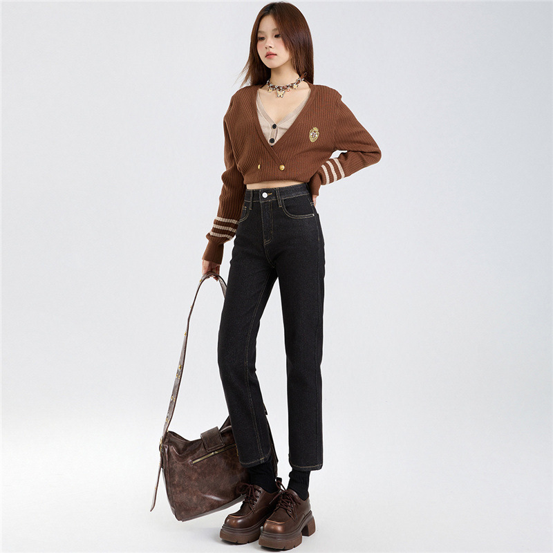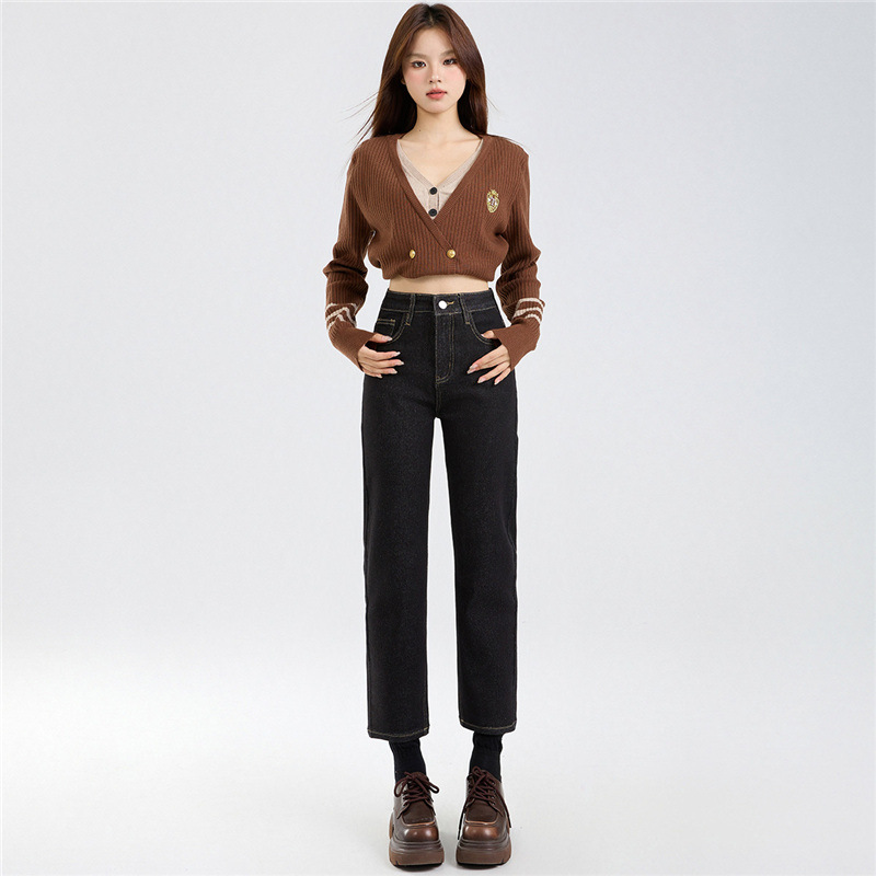 高腰丹宁原色直筒牛仔裤女八分春夏季新款烟管裤小个子九分法棍裤