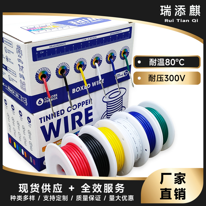 跨境外贸直供6卷6色/盒装PVC电子线30-16AWG镀锡铜航模连接线OK线