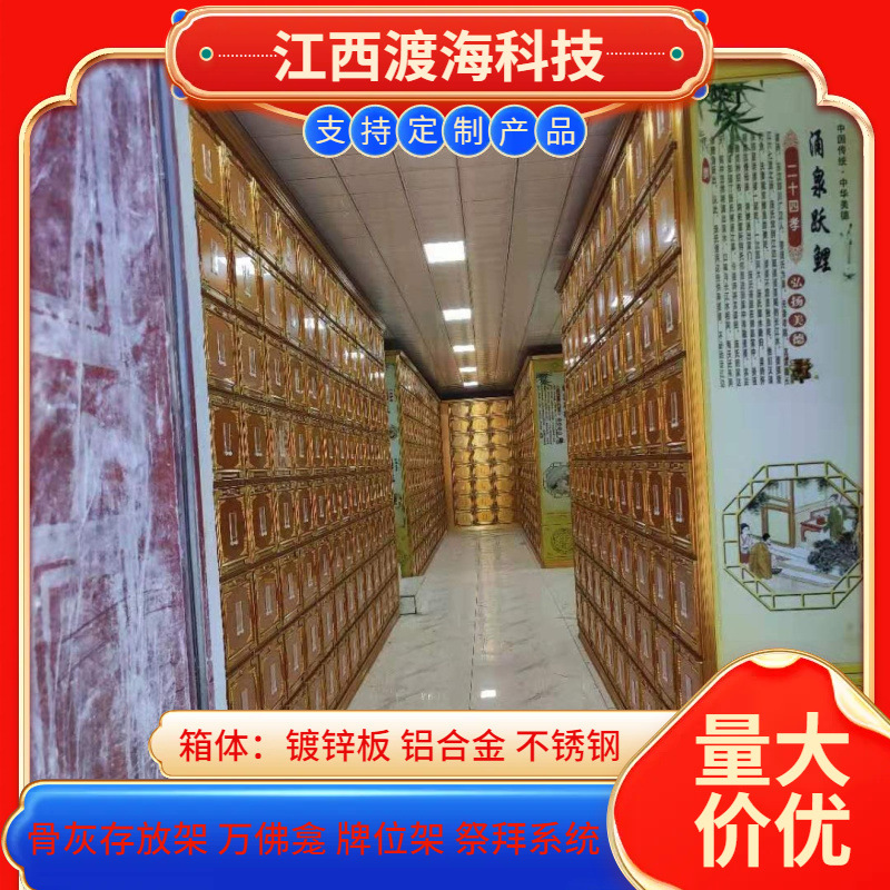 主营产品:骨灰存放架,骨灰盒寄存架,福寿架,万佛龛,牌位架,殡仪馆祭拜系统,寺院智能化管理系统、龙骨吊顶、智能骨灰寄存架
