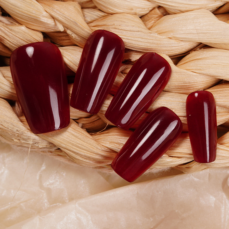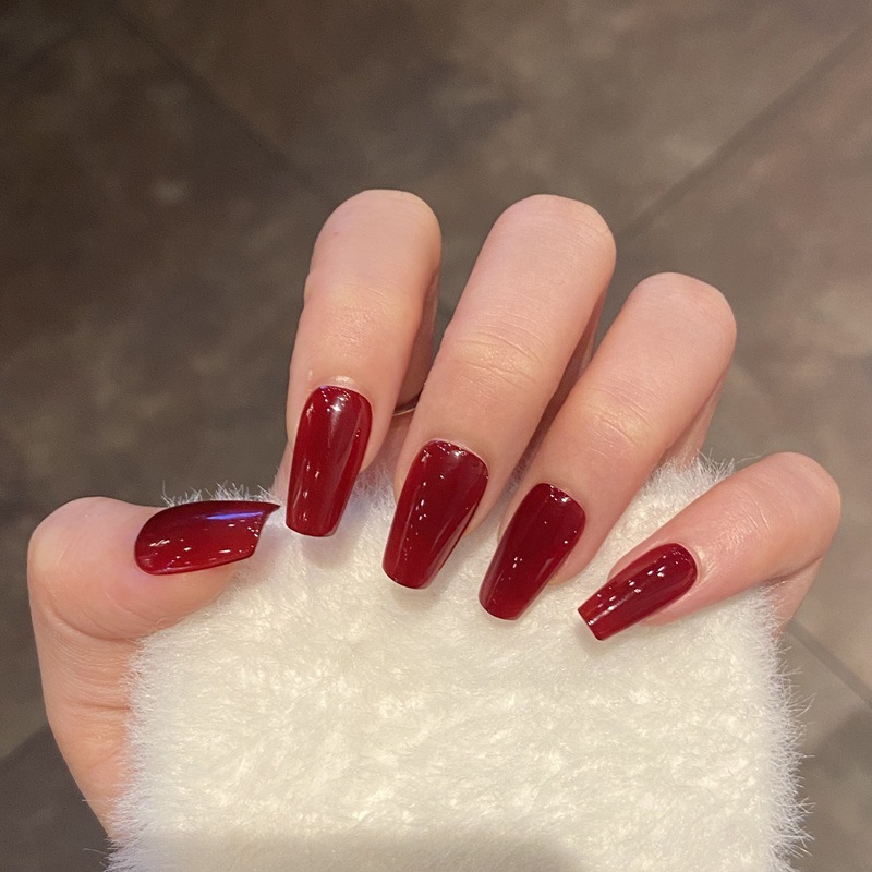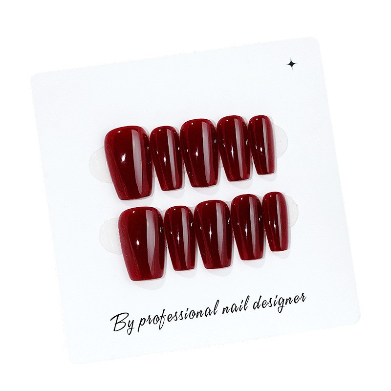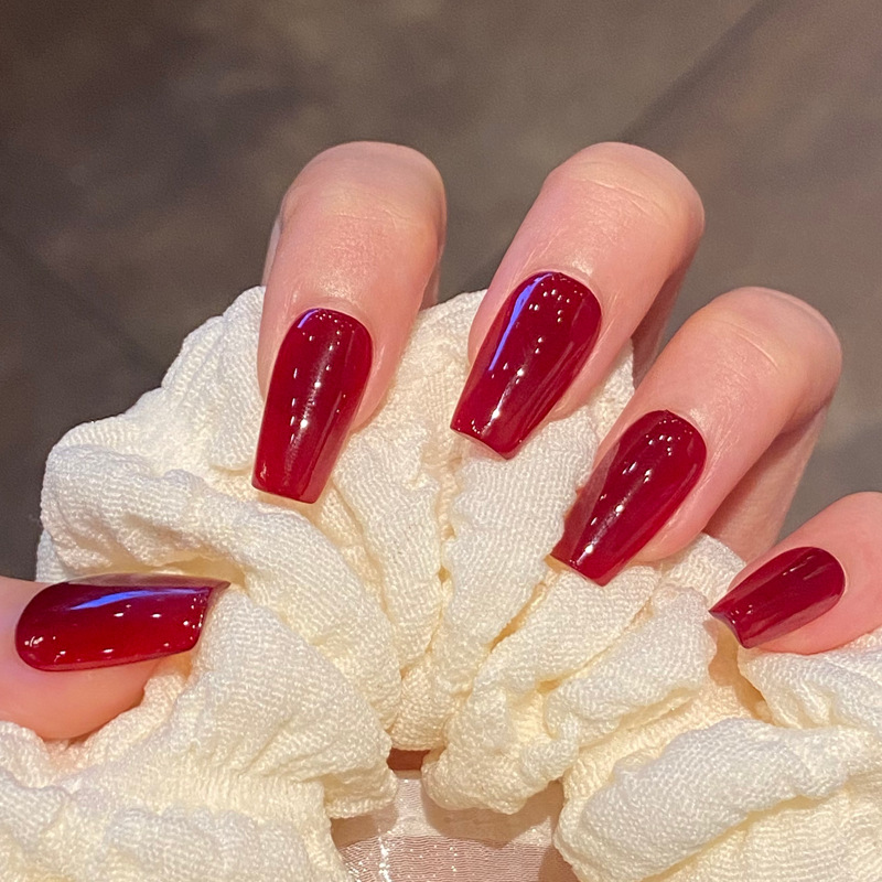 纯色樱桃红色手工穿戴甲经典车厘子显白穿戴式指甲甲片美甲店批发