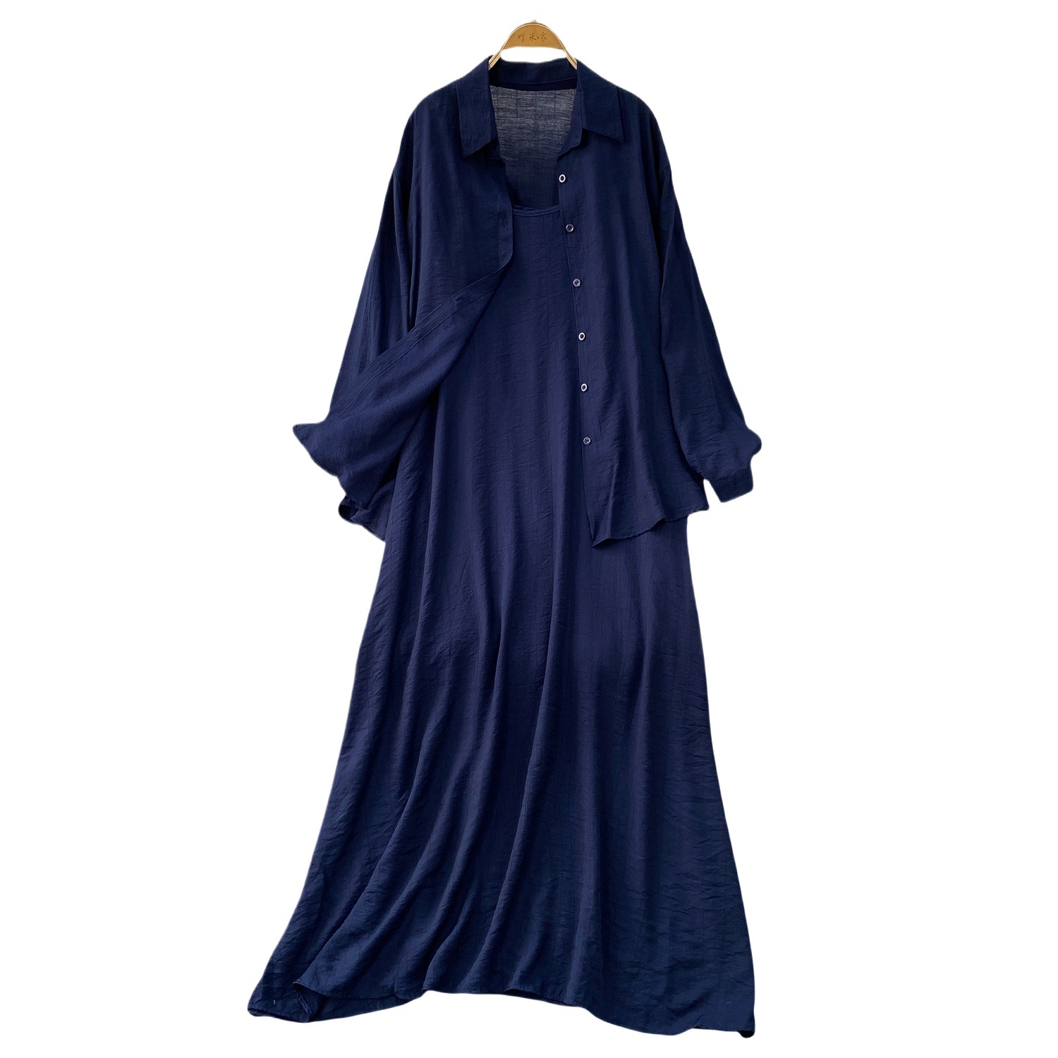 慵懒风休闲两件套女宽松外搭薄款长袖衬衫+遮肉显瘦吊带连衣裙子