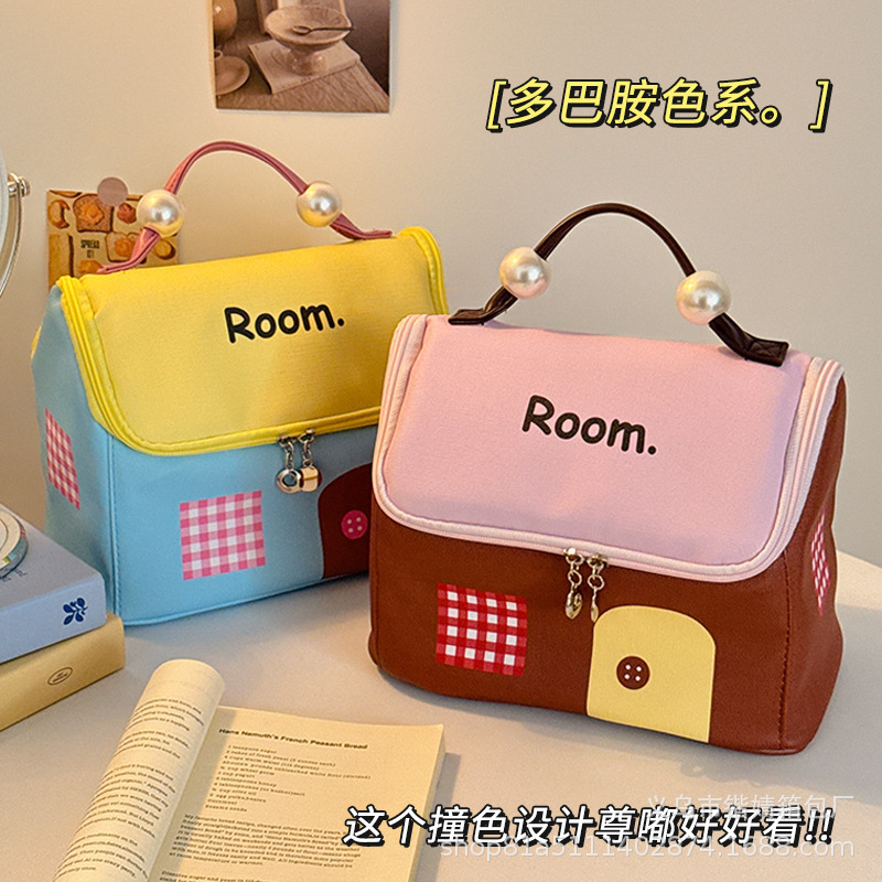 化妆包大容量2025新款撞色便携式ins旅行洗漱包化妆品手提收纳包