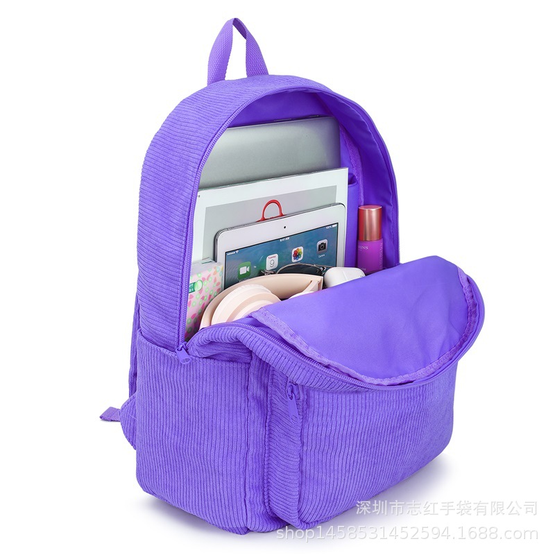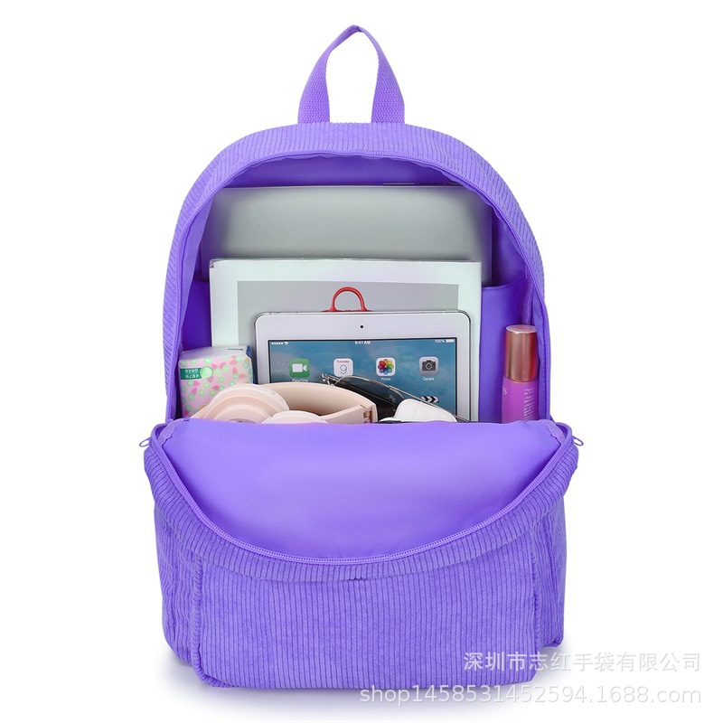 欧美热销i中学生新款书包灯芯绒小背包女士百搭款电脑双肩包