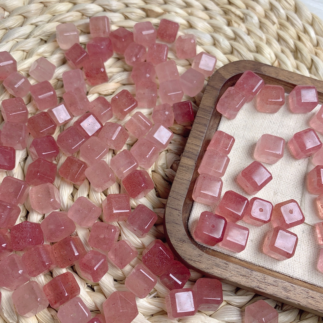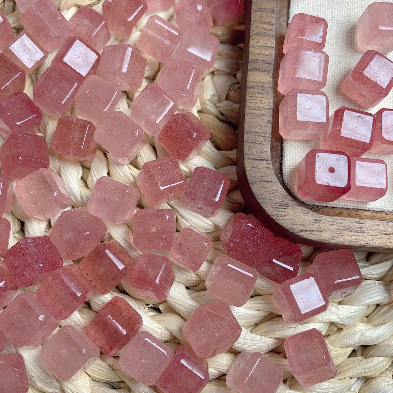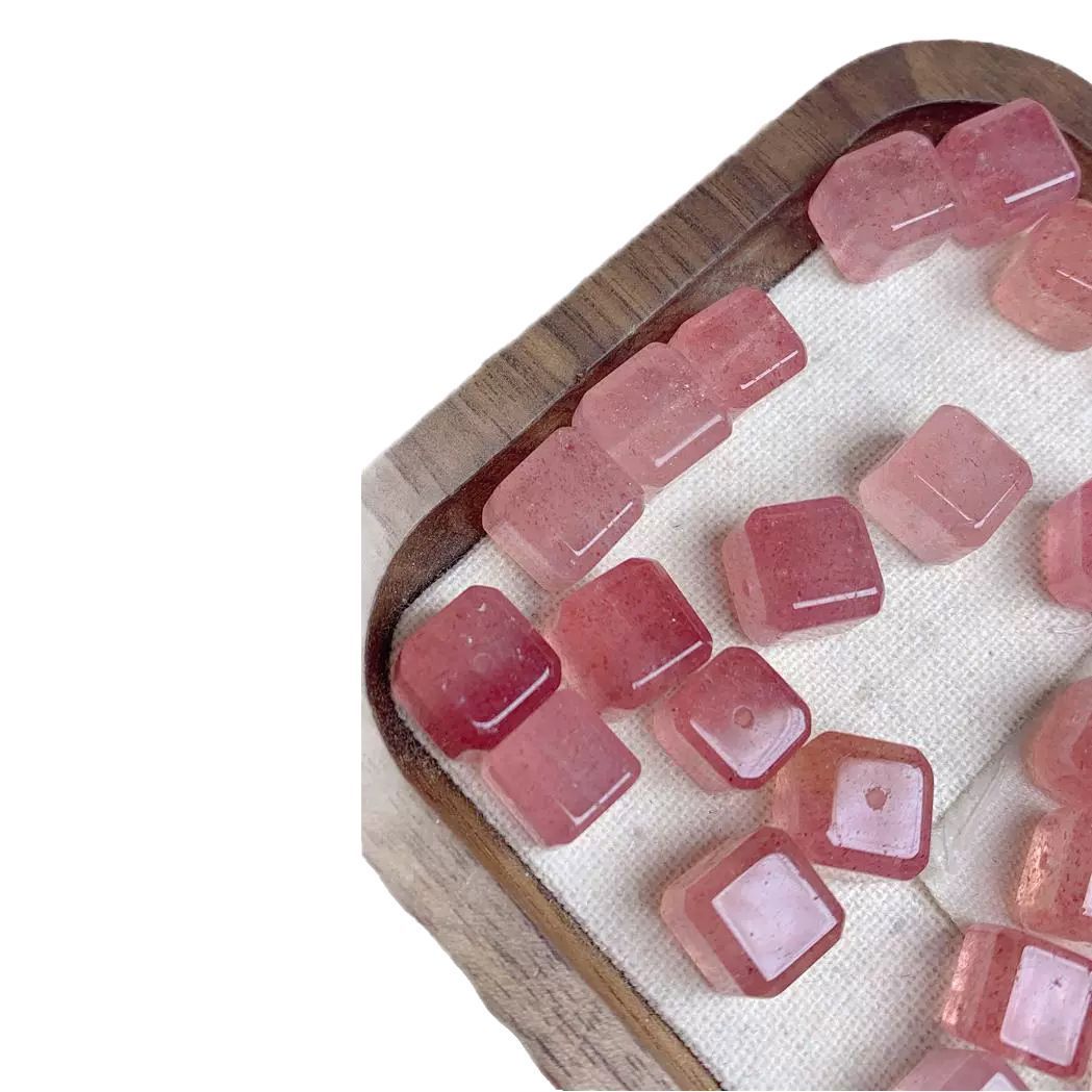 天然草莓晶方糖配珠天然水晶DIY手链项链挂件配饰厂家货源批发