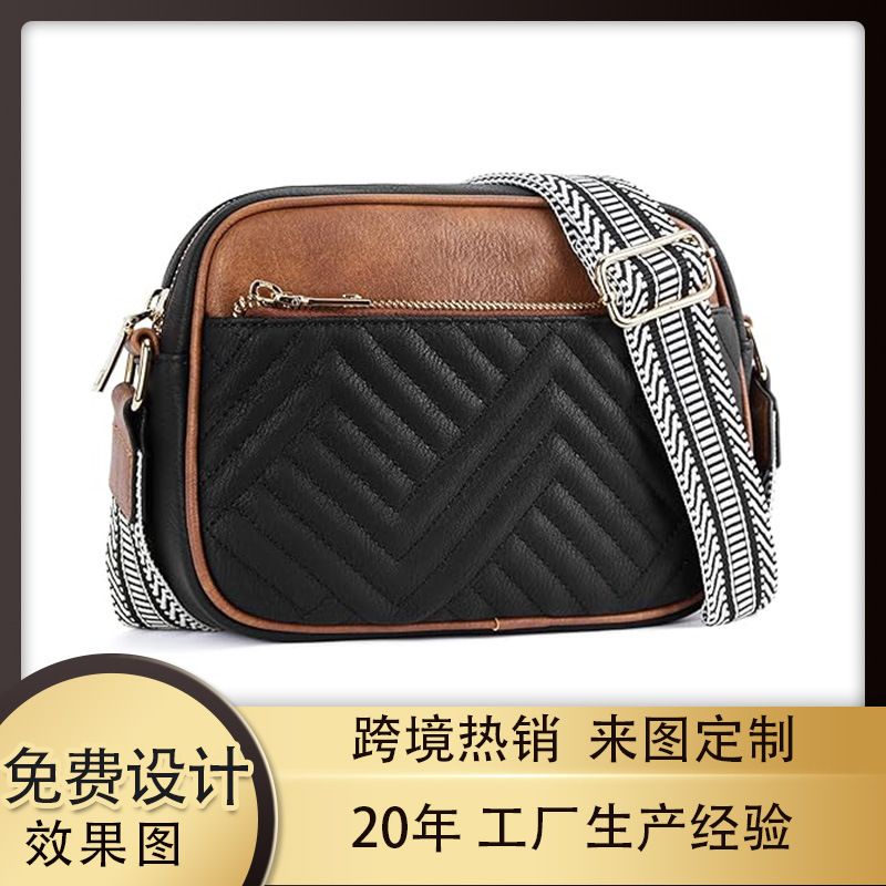 跨境热销2025新款斜挎包潮流拼色女式小方包可调节提花肩带单肩包
