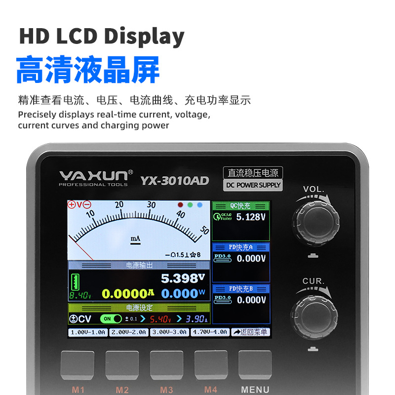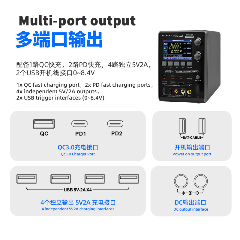 YAXUN直流稳压电源 30V10A智能温控多接口快充过压过载保护