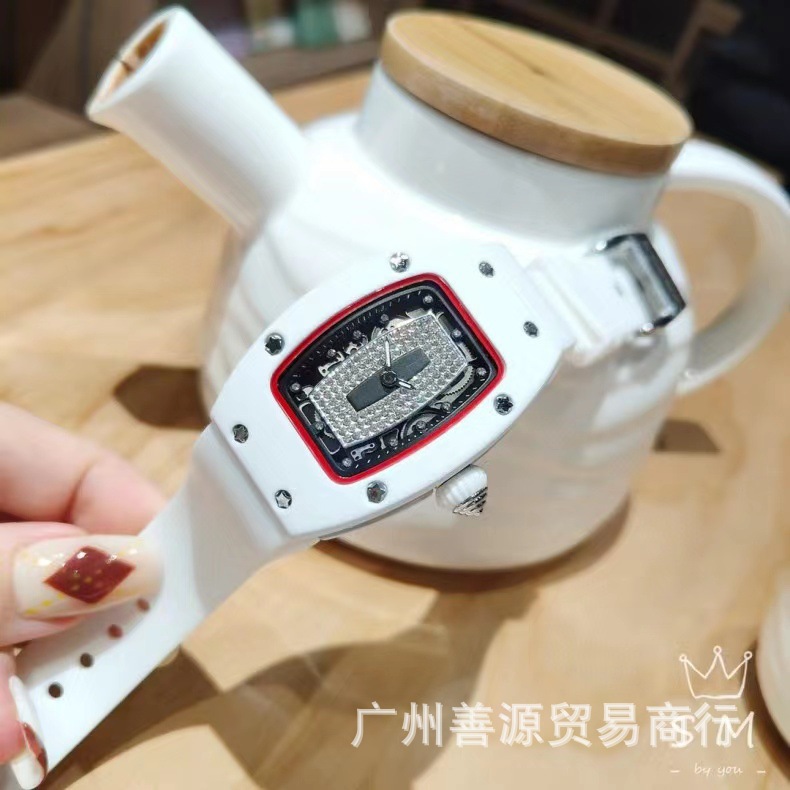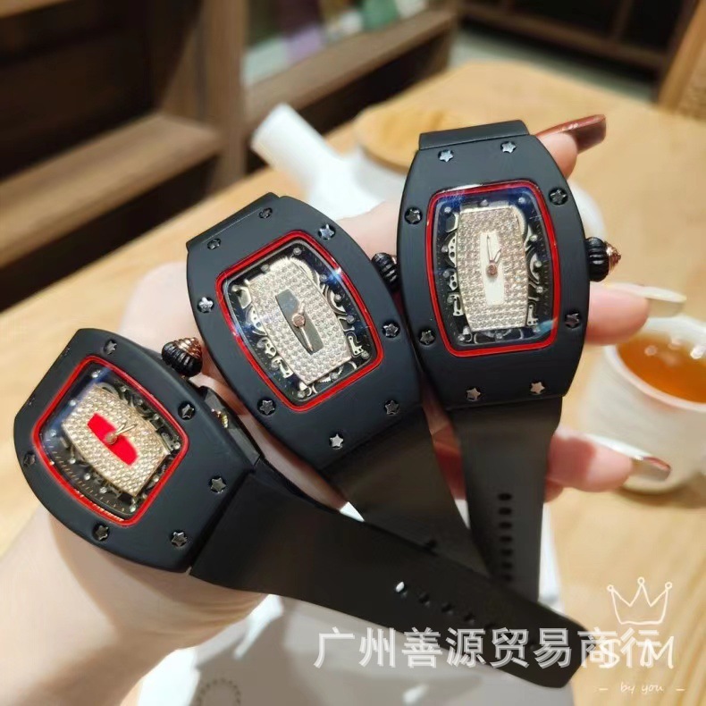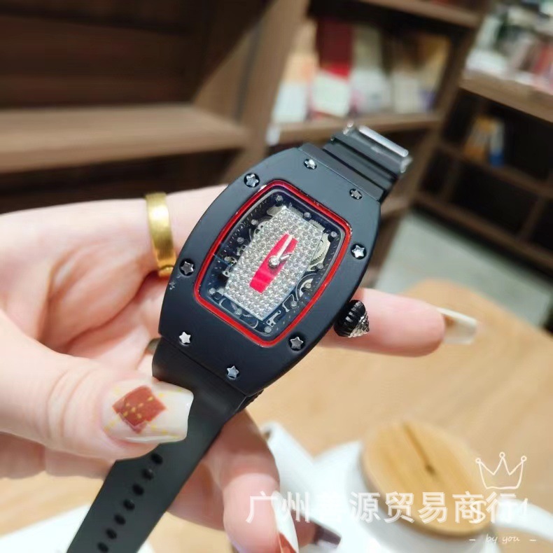 微商跨境代发理查家满钻酒桶形时尚女款手表外贸批发厂家货源源头