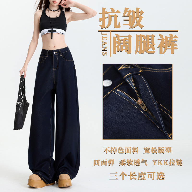 四面弹垂坠感阔腿牛仔裤女2025夏季薄款宽松抗皱小个子显瘦拖地裤