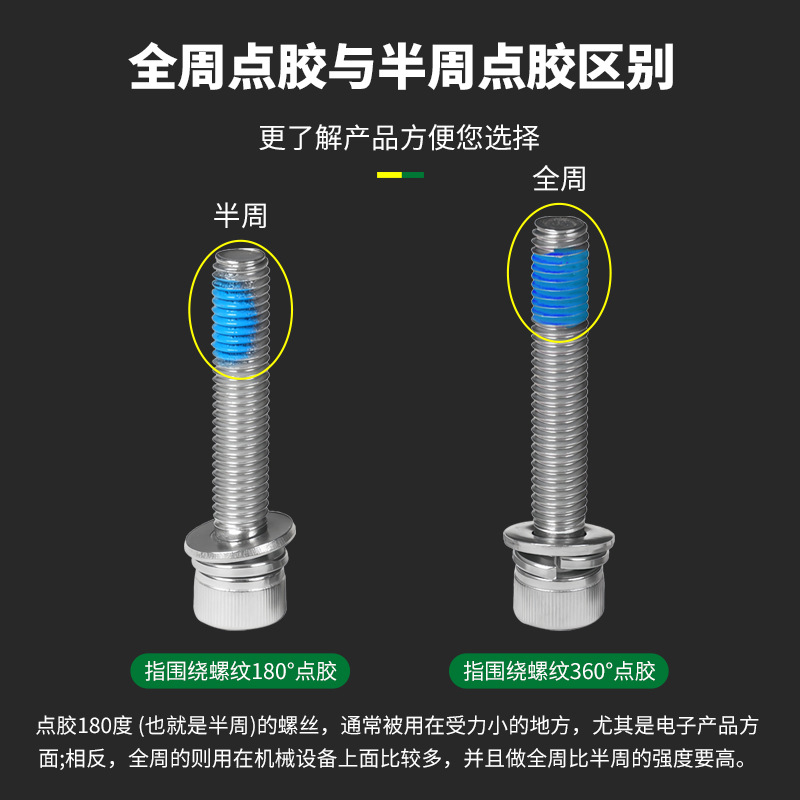 304不锈钢杯头内六角三组合点胶螺栓防松内六角圆柱头三组合螺钉