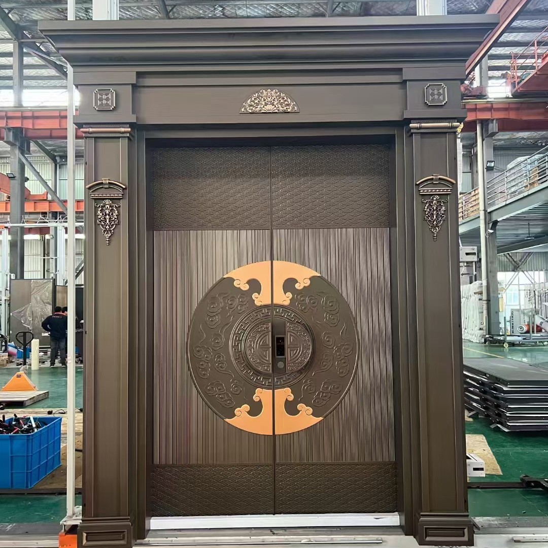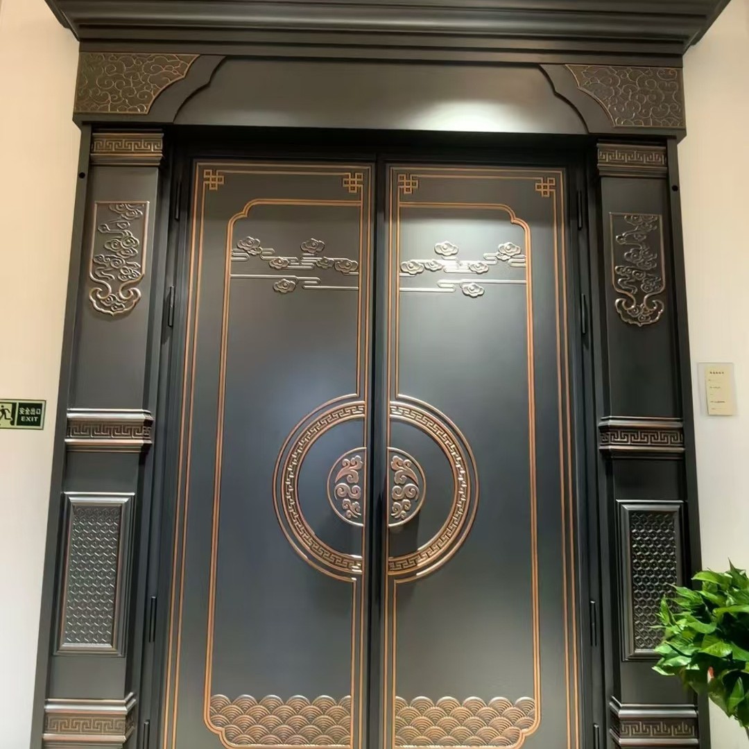 防爆铸铝门一门一景入户门防盗门别墅大门双开门子母进户铜门厂家
