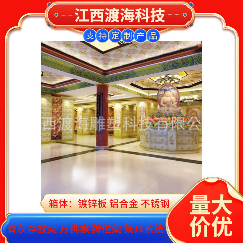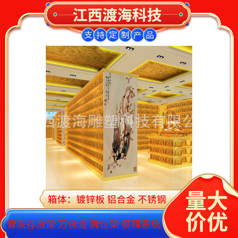 主营产品:骨灰存放架,骨灰盒寄存架,福寿架,万佛龛,牌位架,殡仪馆祭拜系统,寺院智能化管理系统、龙骨吊顶、智能骨灰寄存架