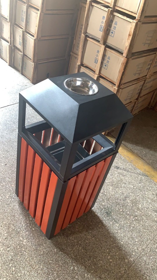 户外钢木果皮箱市政景区公园分类塑木钢条垃圾桶环卫垃圾桶收纳桶