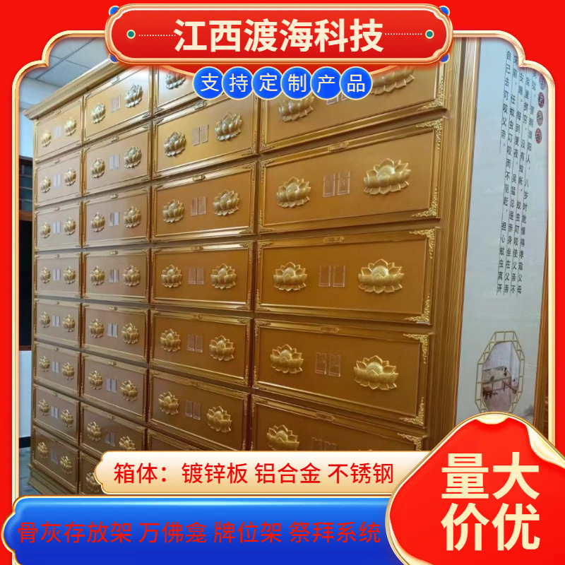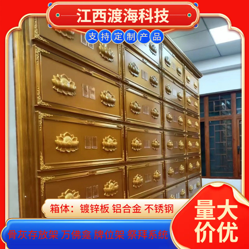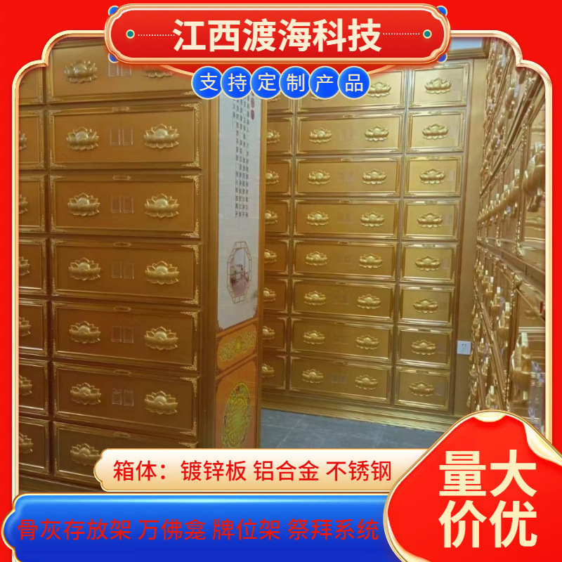 主营产品:骨灰存放架,骨灰盒寄存架,福寿架,万佛龛,牌位架,殡仪馆祭拜系统,寺院智能化管理系统、龙骨吊顶、智能骨灰寄存架