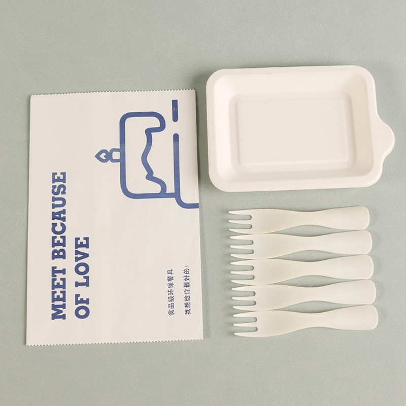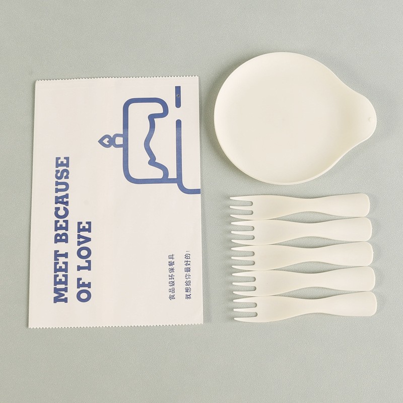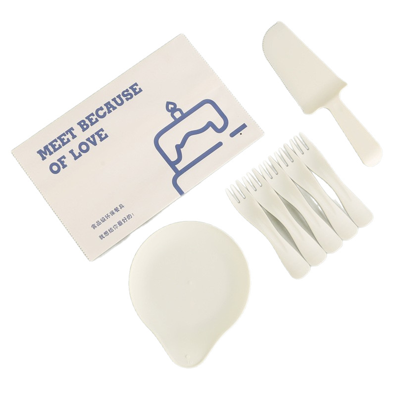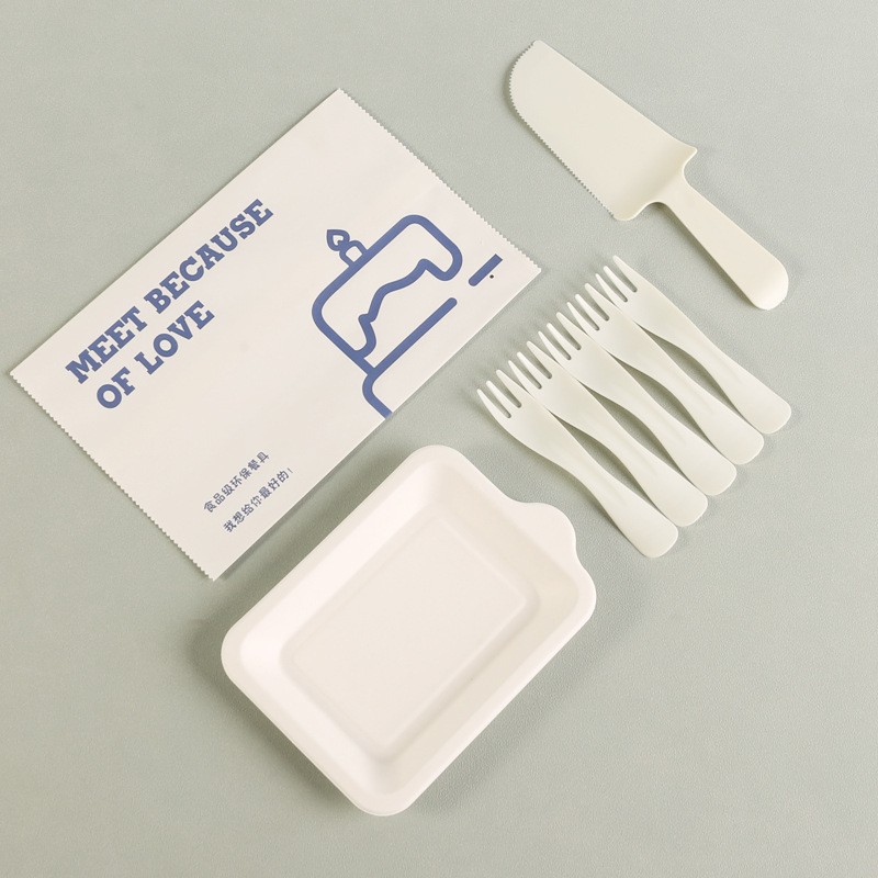 生日蛋糕餐具水滴盘套装塑料一次性刀叉盘波浪叉纸浆盘可降解餐具