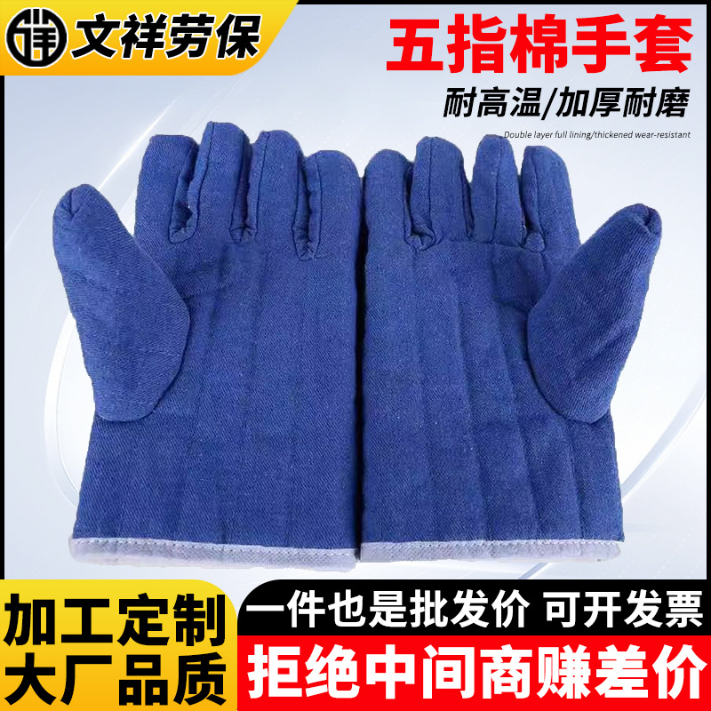 五指棉劳保手套加厚隔热劳保手套烤箱烘培手套白棉花五指棉手套