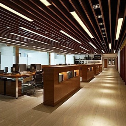 木纹吊顶材料铝方通办公室通道天花装饰铝方通格栅地铁站天花板