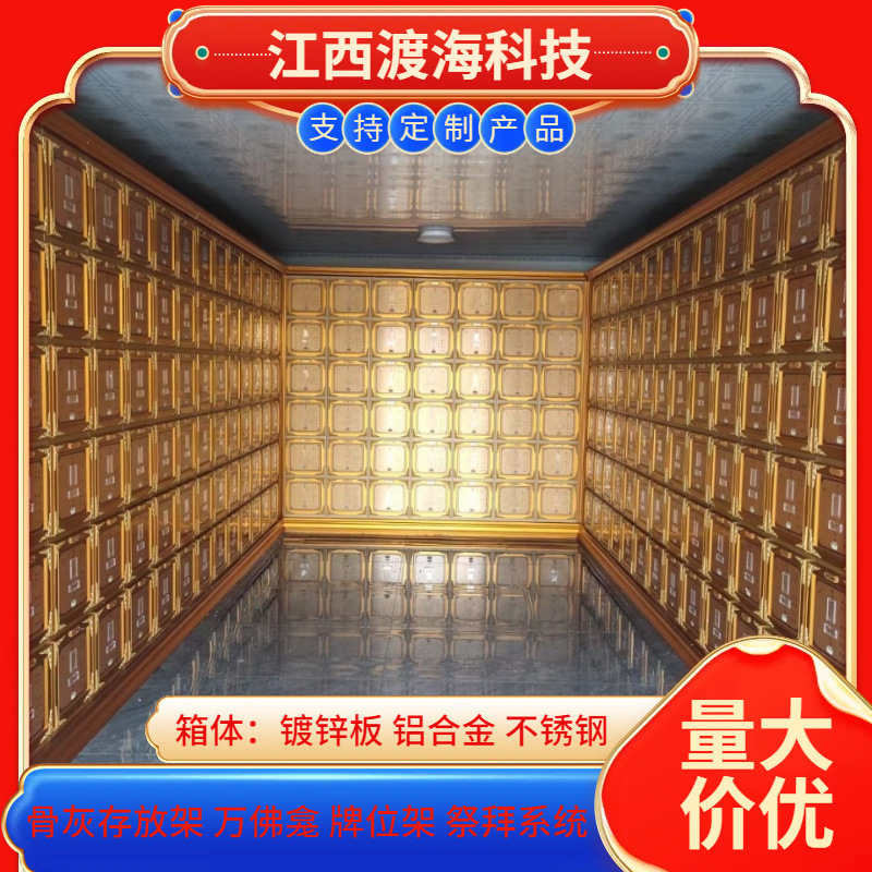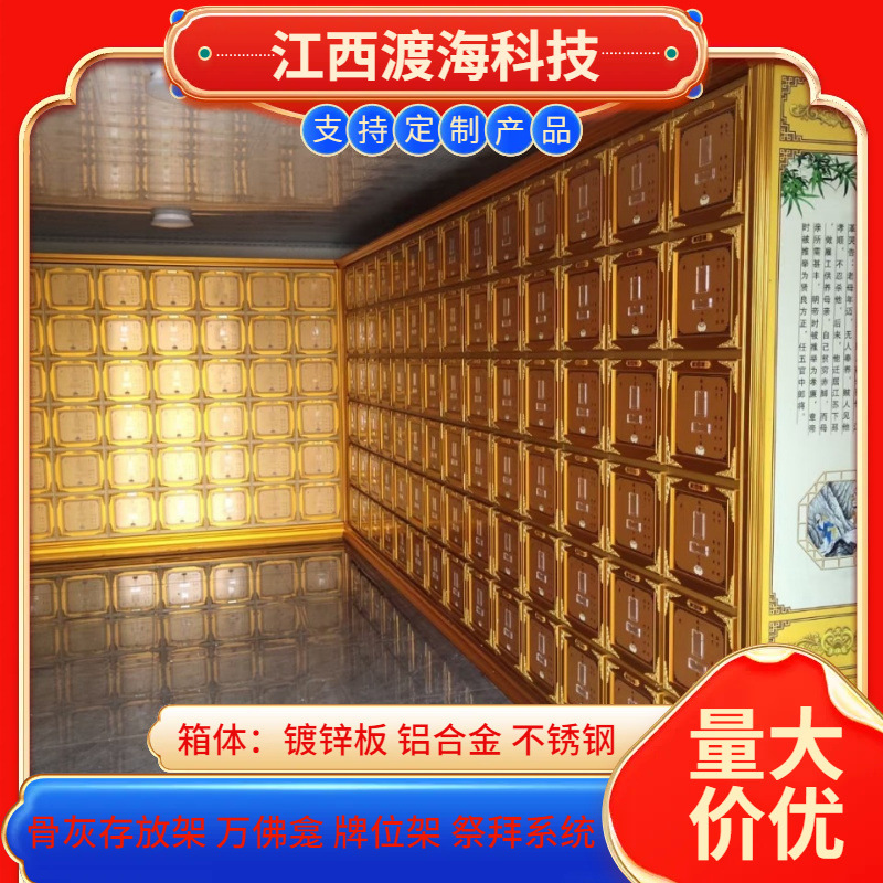 主营产品:骨灰存放架,骨灰盒寄存架,福寿架,万佛龛,牌位架,殡仪馆祭拜系统,寺院智能化管理系统、龙骨吊顶、智能骨灰寄存架