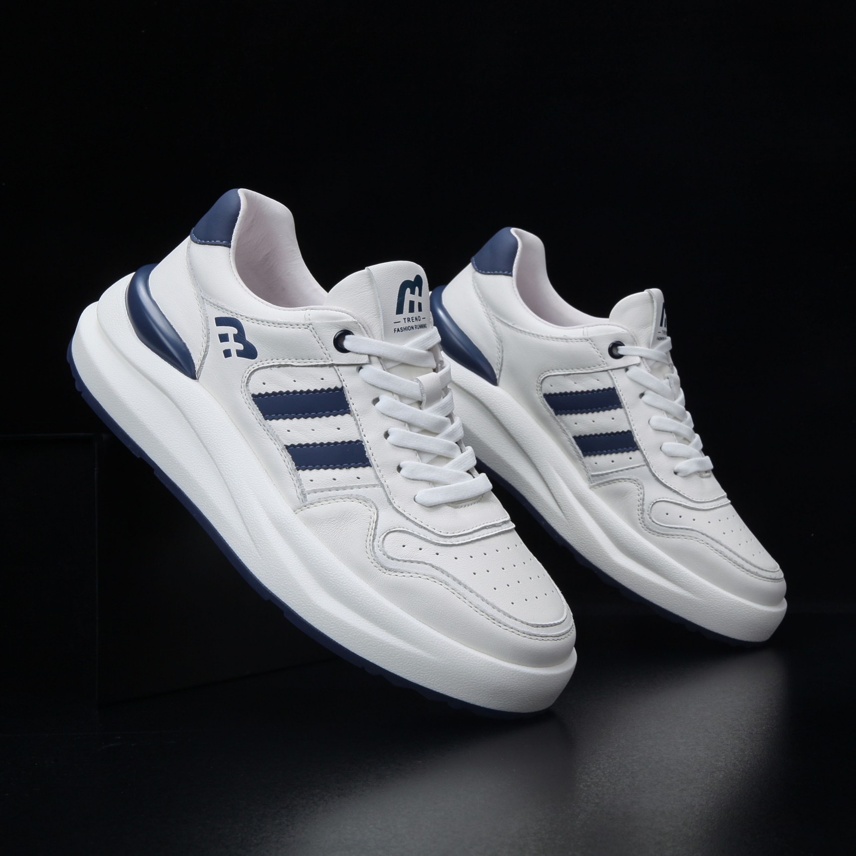 头层牛皮轻奢男鞋2025年新款春夏季厚底外贸款时尚小白鞋男士软底