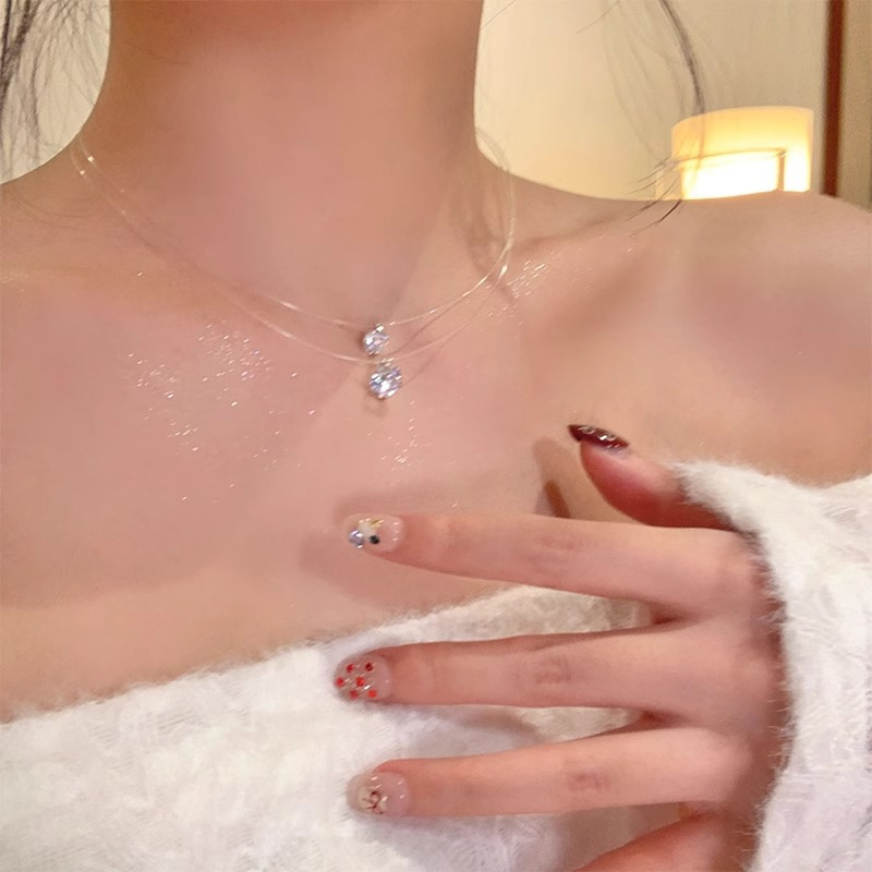纯银人鱼之泪项链闪钻莫桑石锆石鱼线项链轻奢锁骨链女高级感配饰
