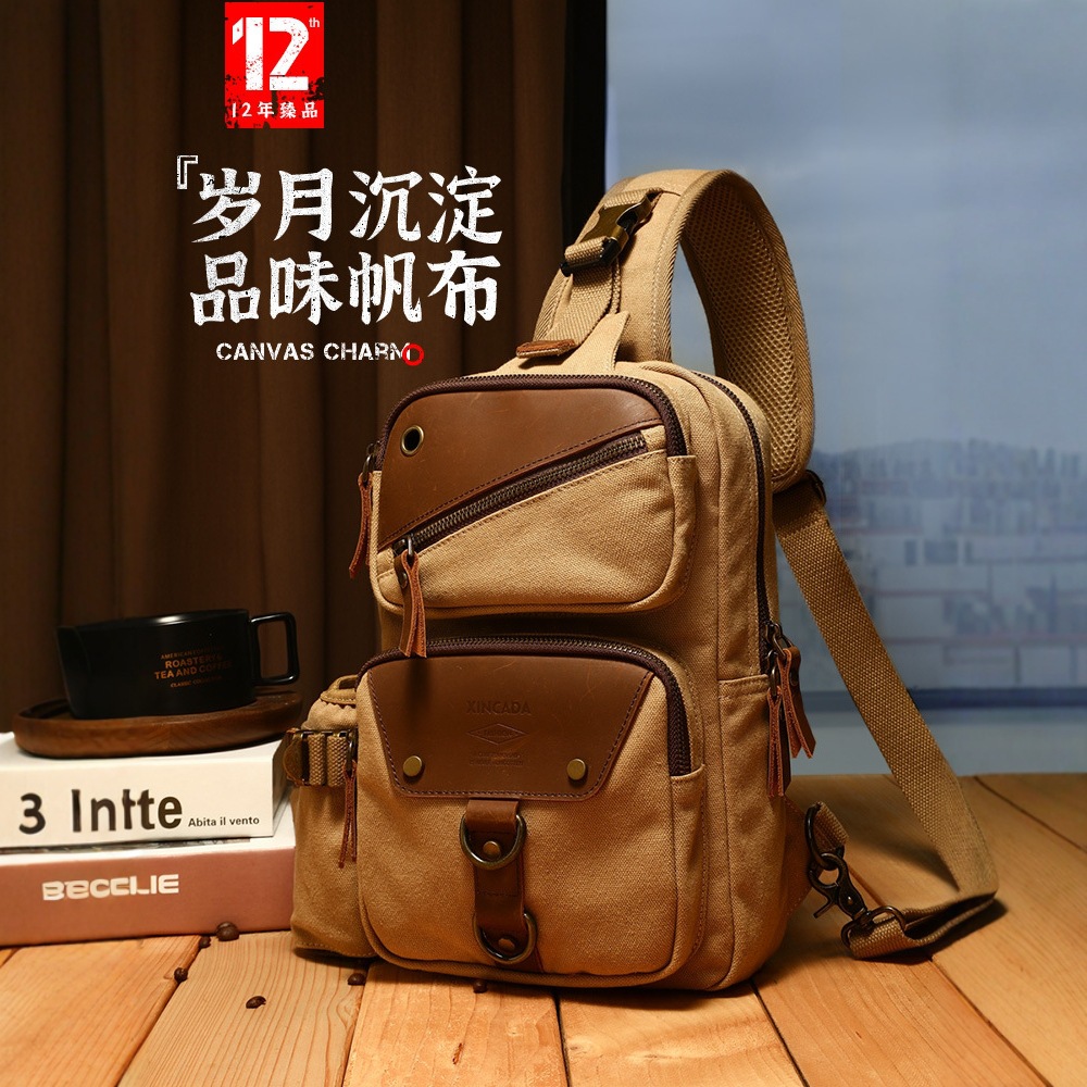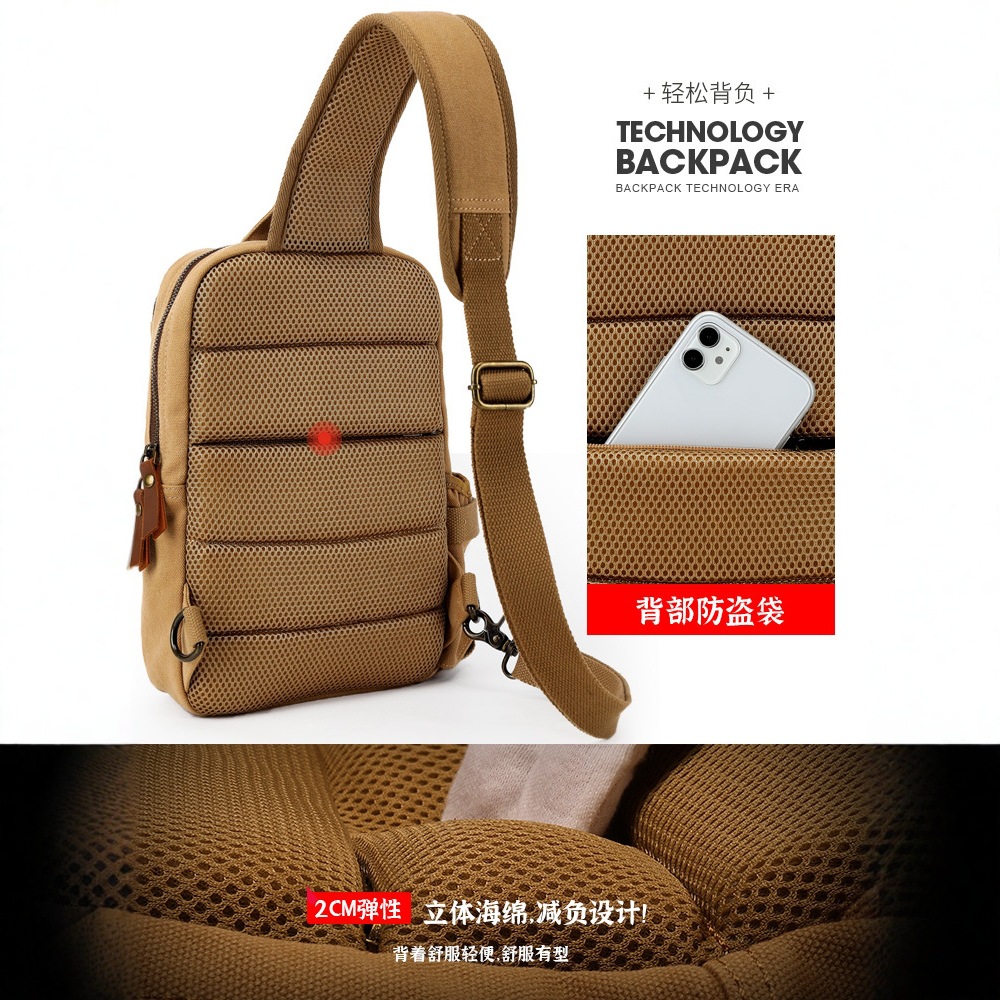 厂家批发帆布胸包斜挎包 男式小胸包户外手提腰包收钱包 跨境代发