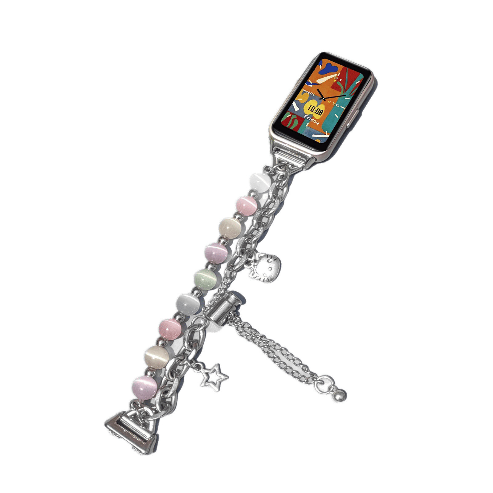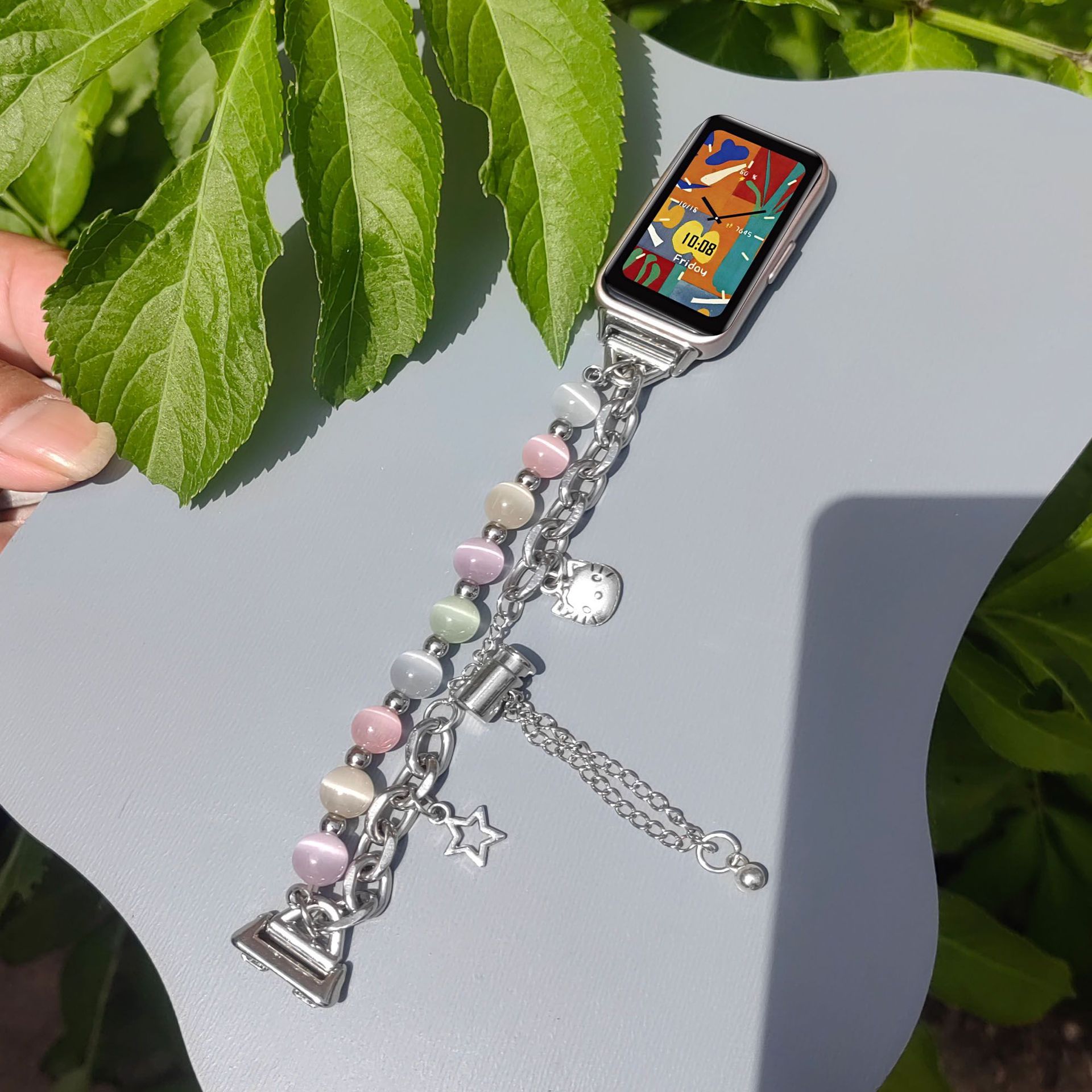 猫眼石小米手环手链表带适用苹果NFC双链串珠金属高级链条小香风