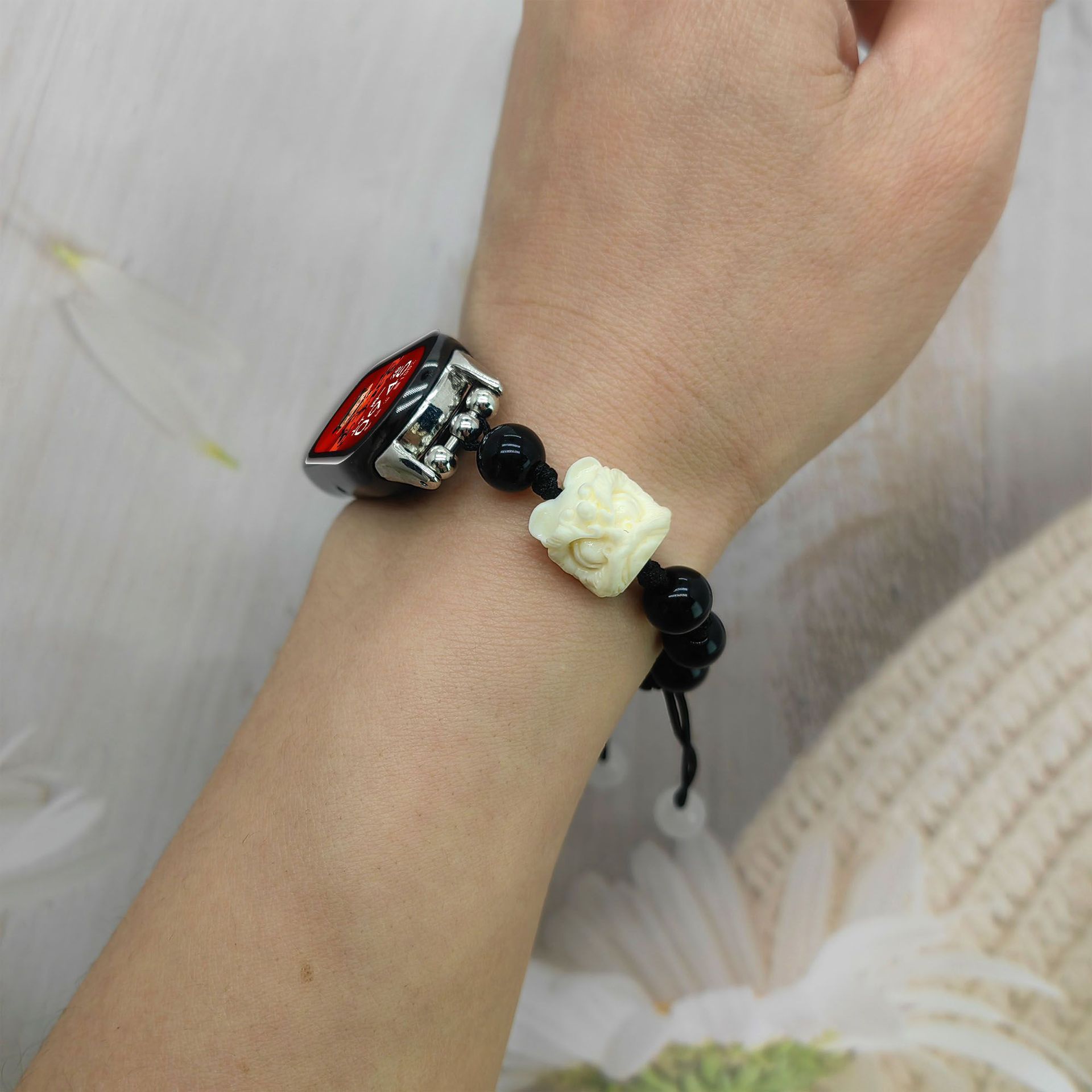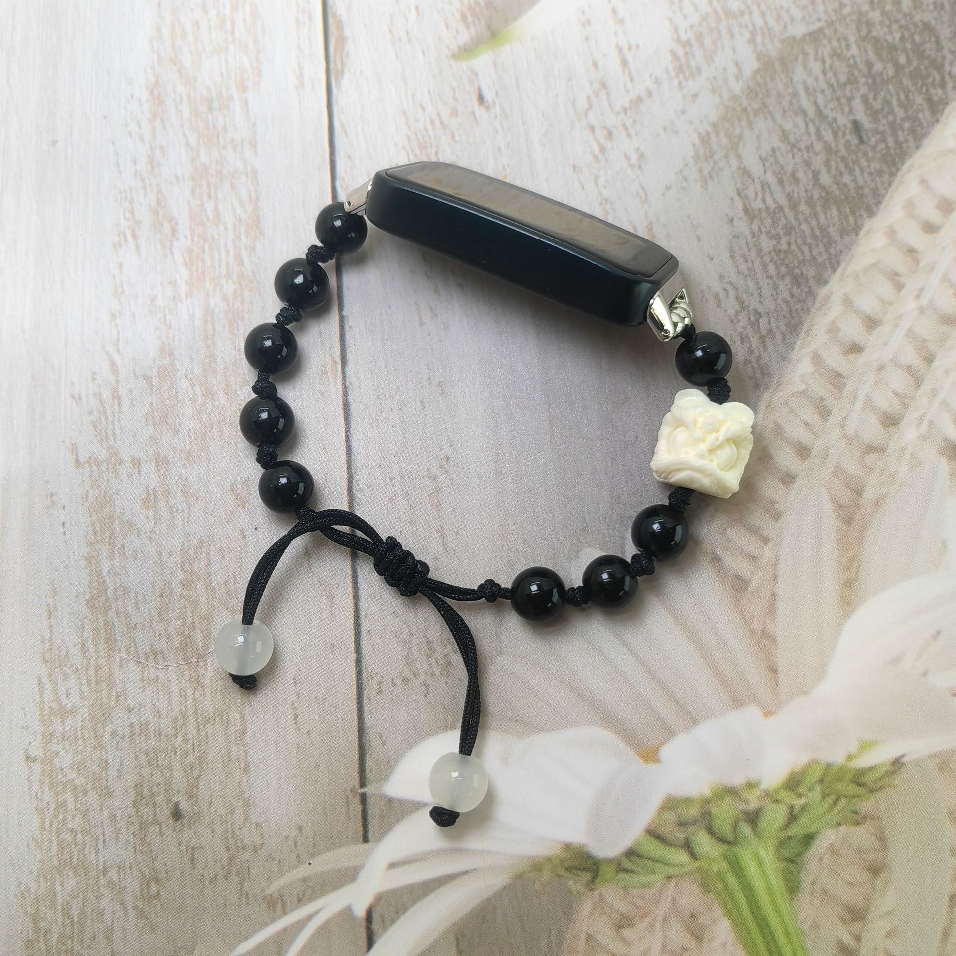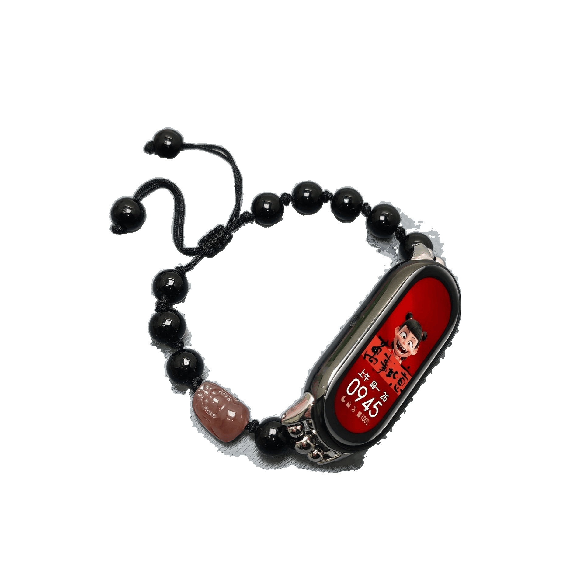 中式编绳醒狮貔貅适用小米手环NFCPro表带黑曜石串珠腕带卡扣批发