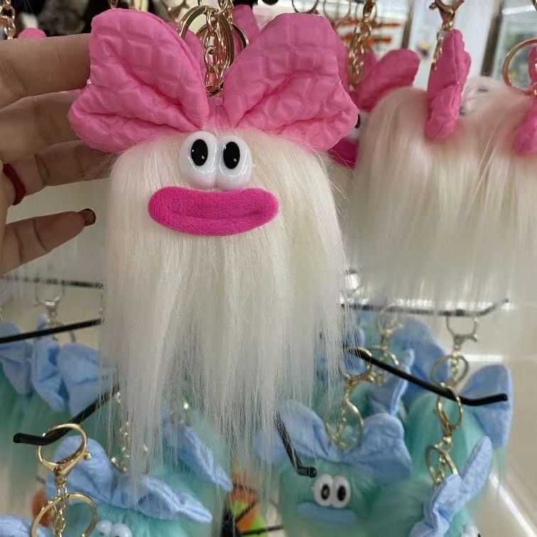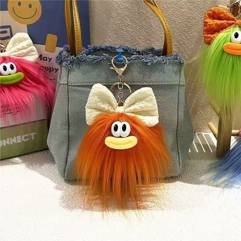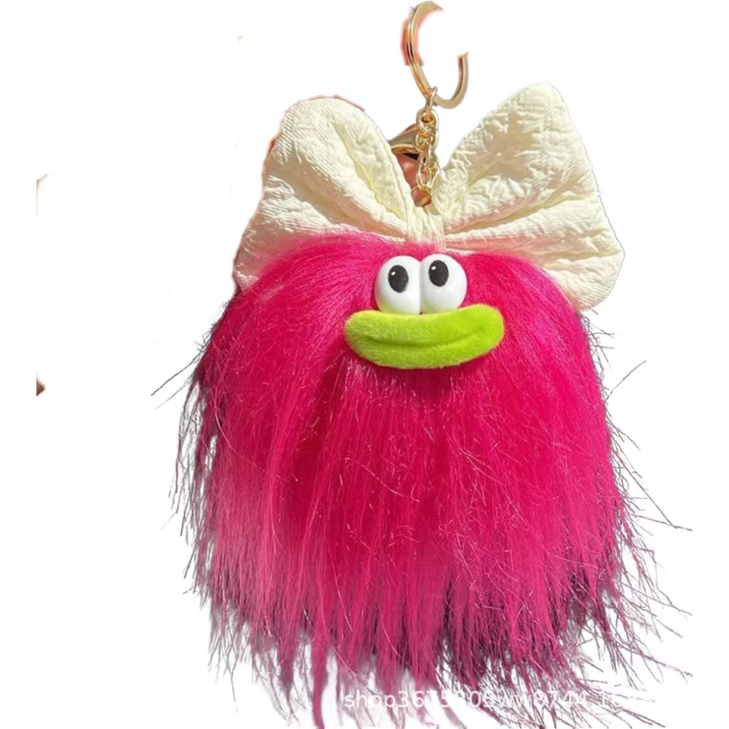 25年新款网红小挂件蝴蝶结长毛小怪钥匙扣创意卡通毛绒包挂件玩偶